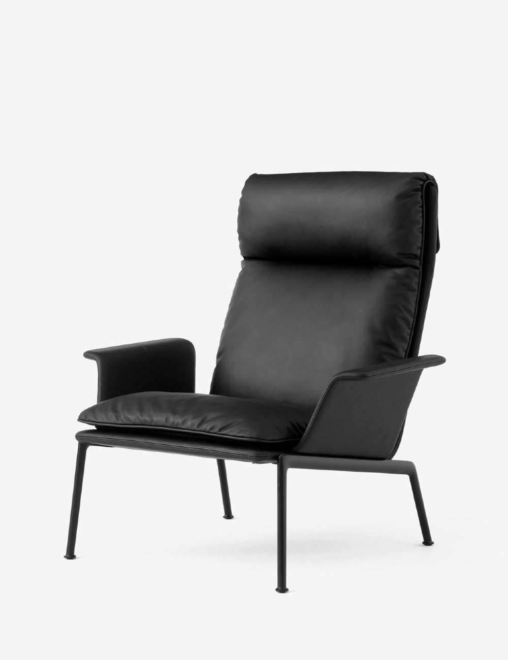 Compuesta por cinco diseños, la colección Muno incluye sillones con respaldo alto y bajo, con o sin brazos, y su correspondiente reposapiés. La base de aluminio fundido de cada diseño puede elegirse en cromo oscuro o con un cálido recubrimiento de polvo negro.