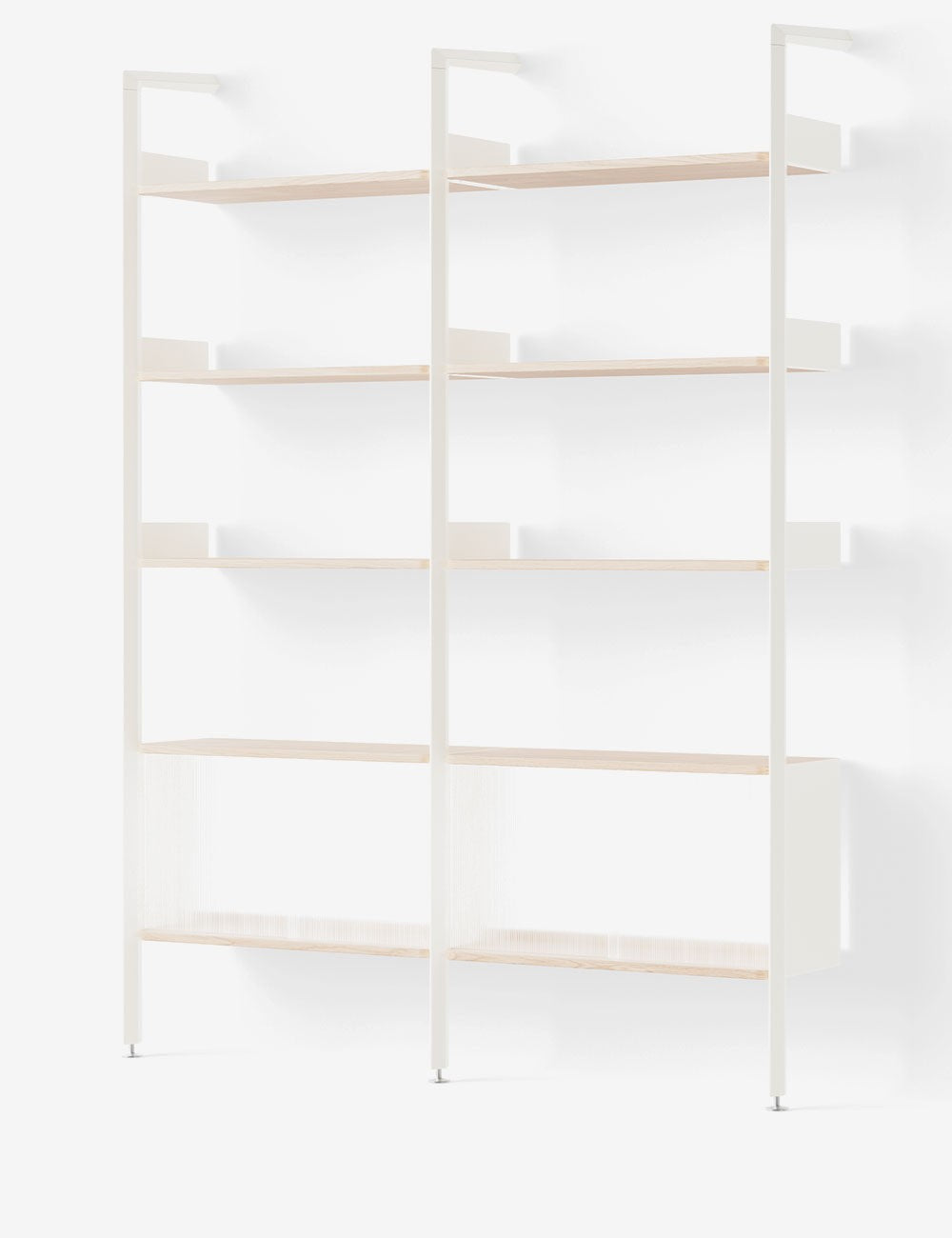 Disponible en 11 configuraciones predeterminadas, el sistema admite ampliaciones mediante la incorporación de módulos y estantes, facilitando composiciones completamente personalizadas.