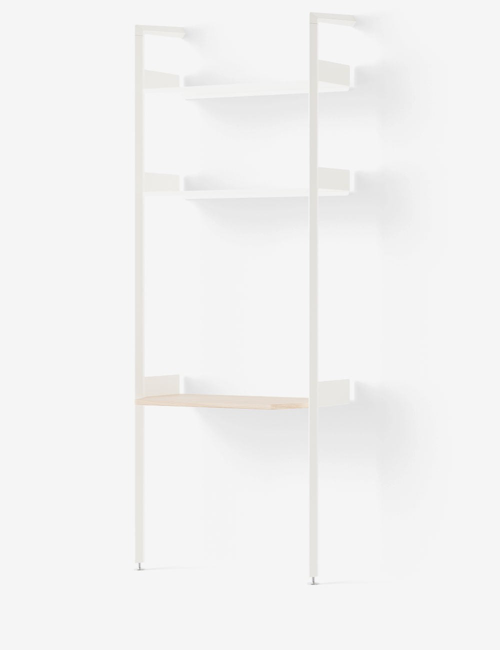 Los estantes se presentan tanto en chapa de acero cortada y conformada por tecnología láser, como en tablero de base de madera recubierto con chapa de roble o nogal.