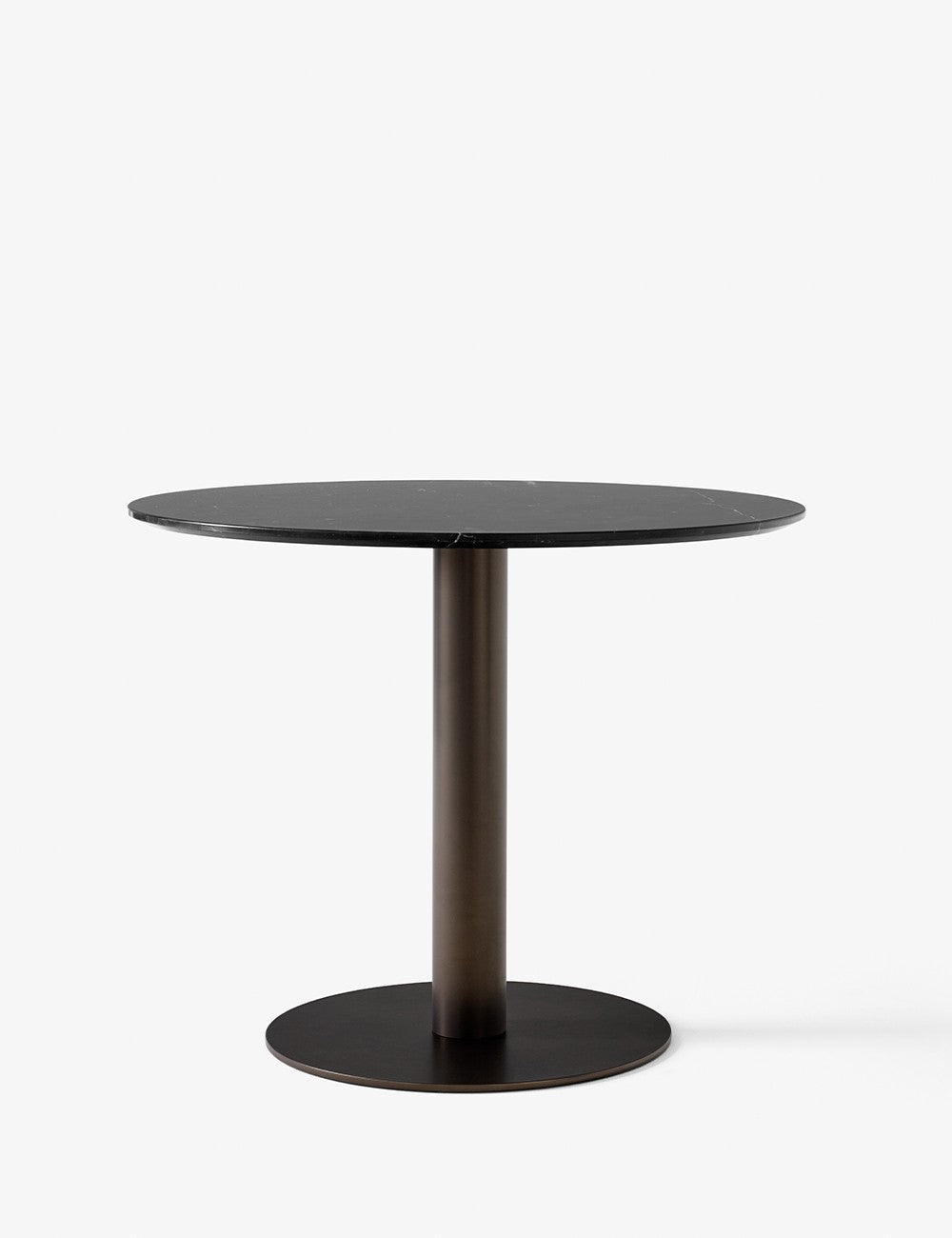 La base tubular de la mesa se realiza en un resistente acero negro o bronceado y la tapa en marmol pulido con acabado mate.