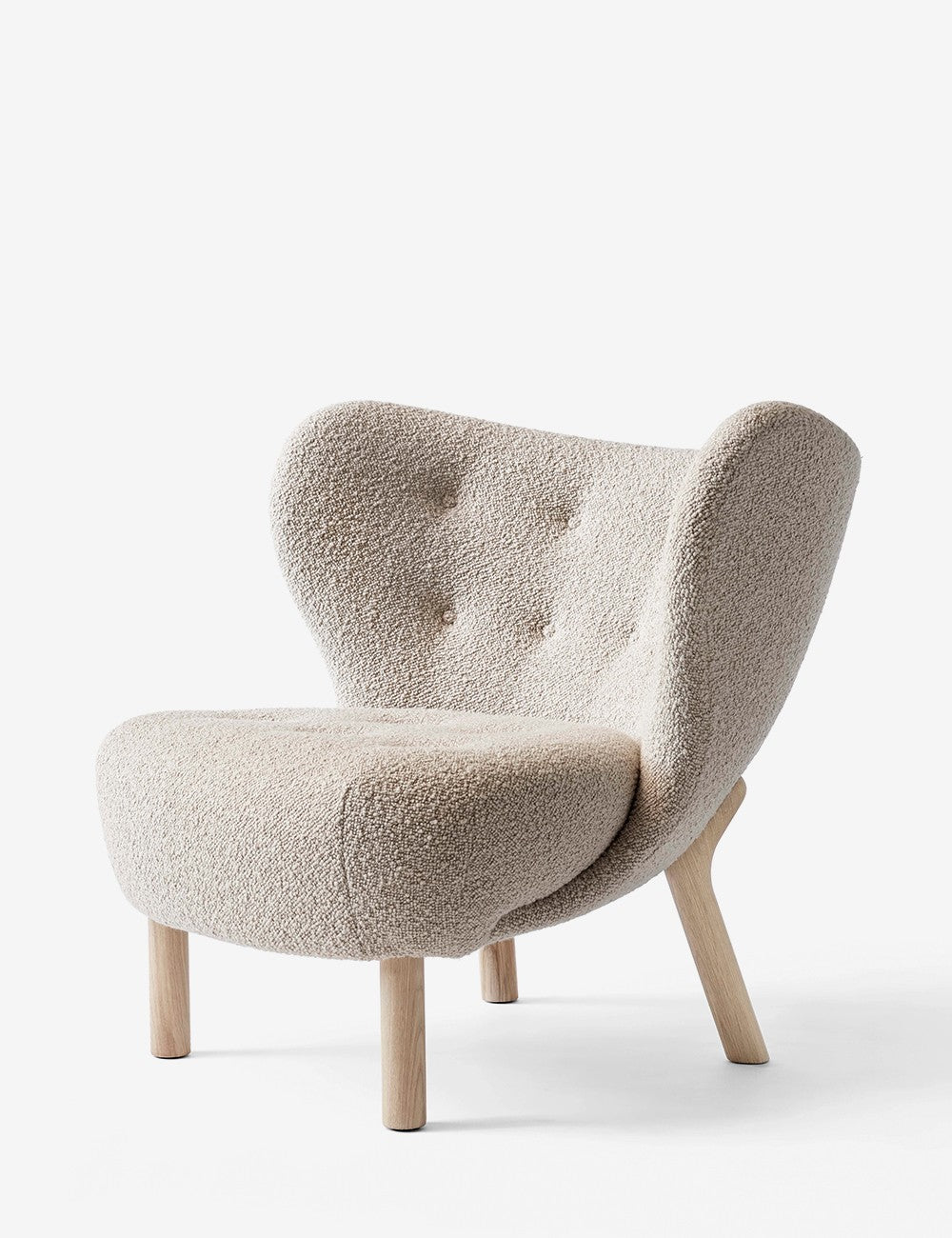 Tanto la estructura como las patas de Little Petra se realizan artesanalmente. Su estructura está hecha de fresno recubierto de espuma CMHR y sus patas en roble o nogal.