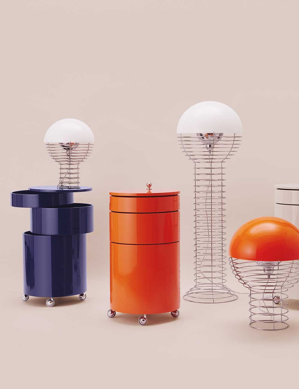 Barboy es a la vez mesa auxiliar adaptable y unidad de almacenaje móvil. Diseñado por Verner Panton en 1963 y reeditado por VERPAN, integra tres cajones circulares que se extraen por completo, de modo que toda la superficie queda utilizable. El contraste entre la superficie en alto brillo y los detalles en cromo —tirador y ruedas— aporta un toque elegante y distintivo, fiel al lenguaje de Panton. Su diseño funcional y escultórico lo convierte en una pieza versátil para salón, dormitorio, estudio o espacios de hostelería.