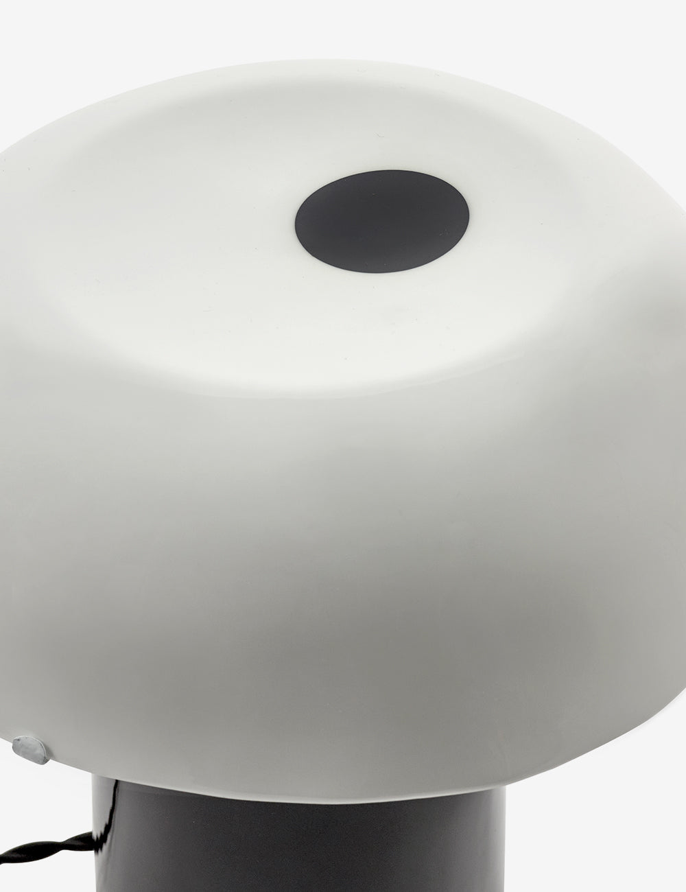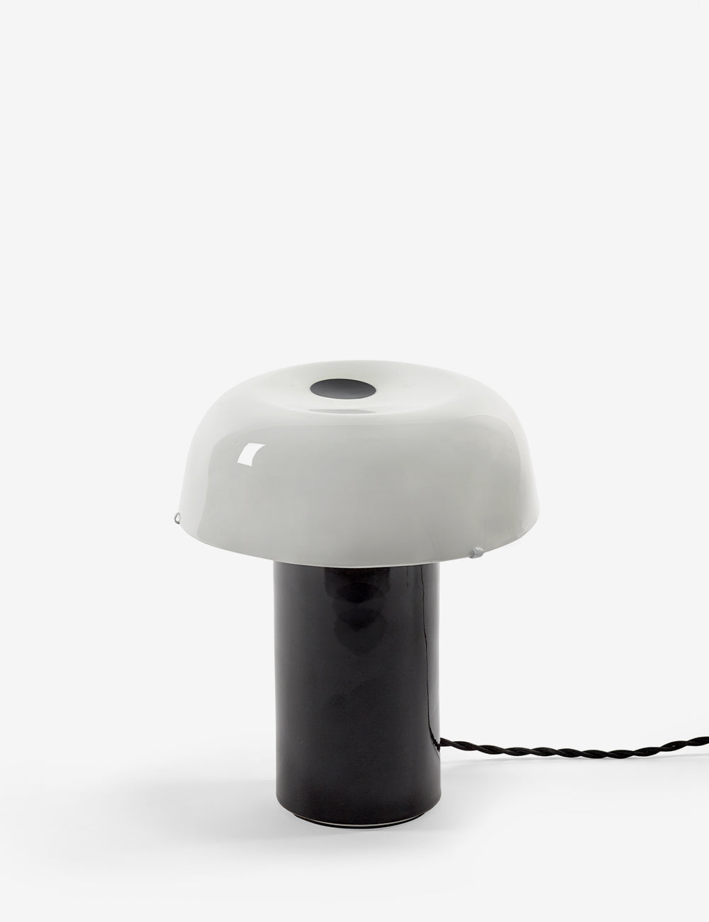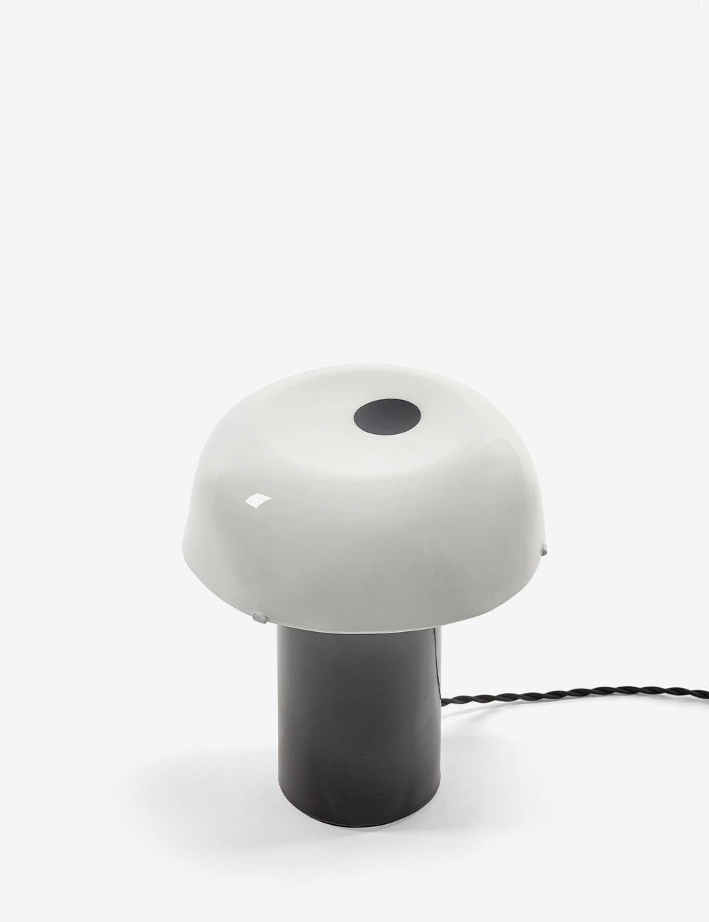 Estas lámparas juegan con el contraste clásico del blanco y negro, realzado por el detalle de un punto negro en la parte superior de la pantalla de porcelana blanca, añadido por Le Grelle.