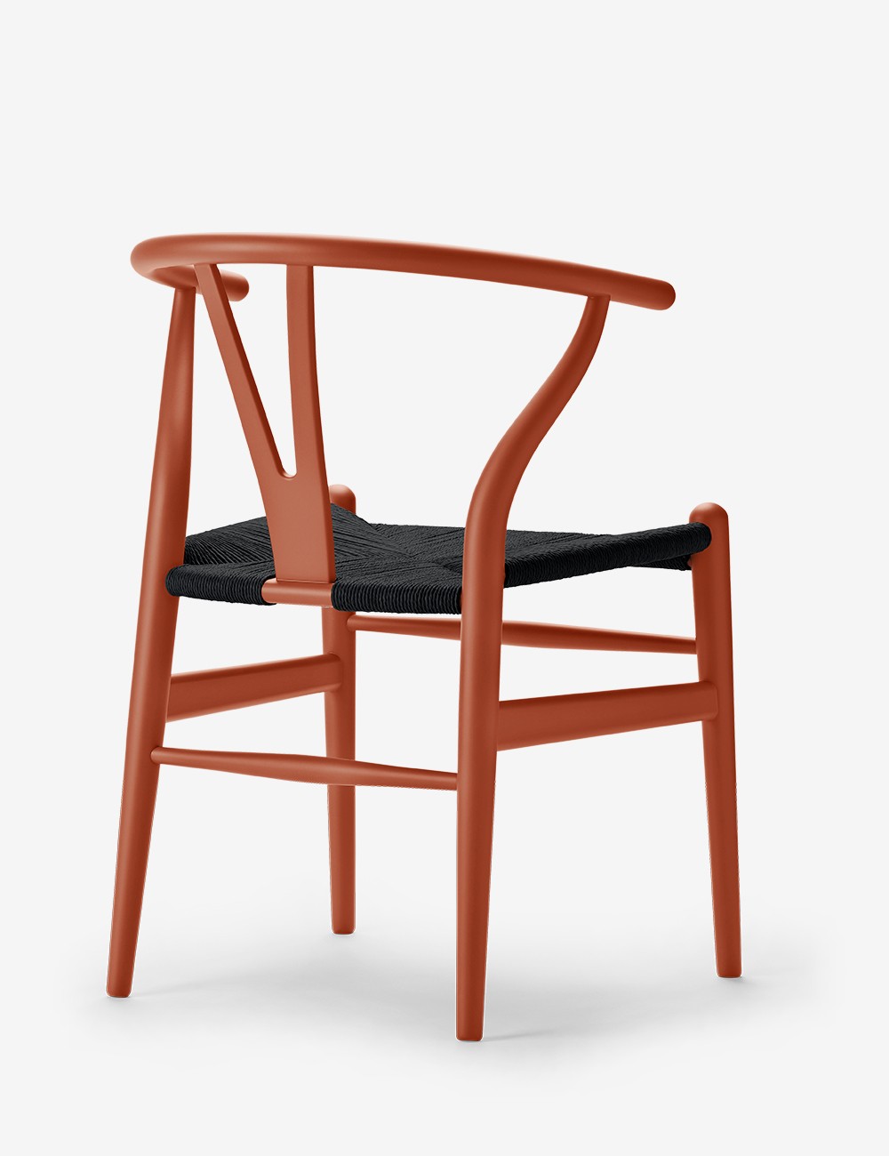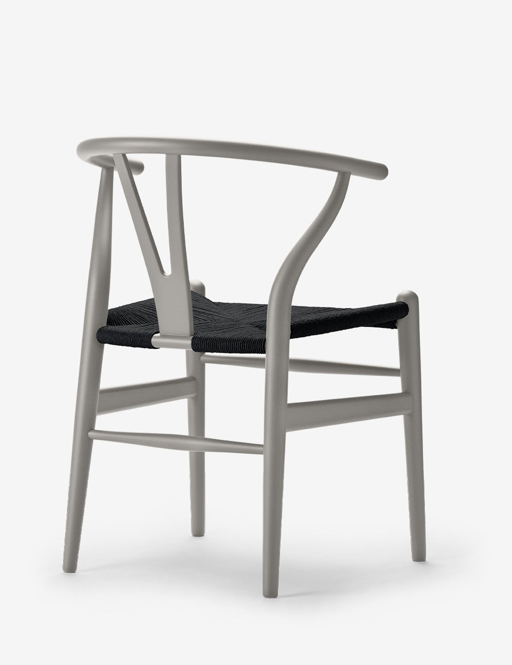 Al diseñar la CH24, Wegner optó por combinar el respaldo y el reposabrazos en una sola pieza. Para dar estabilidad a la parte superior curvada al vapor y garantizar un apoyo cómodo, Wegner desarrolló el característico respaldo en forma de Y que da nombre a la Wishbone Chair.