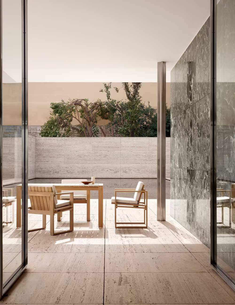 Diseñado en 1959 por la arquitecta danesa Bodil Kjær como parte de su serie Indoor-Outdoor de inspiración arquitectónica.