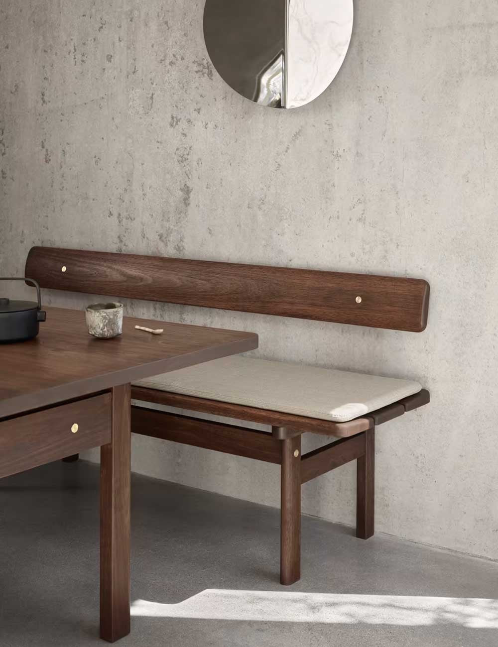 Excelente ejemplo de diseño orientado a las personas, el banco Asserbo de Børge Mogensen demuestra el enfoque funcional y formal del diseñador danés. Disponible con respaldo fijo o mural, así como con cojines de tela, el diseño personalizable tiene una expresión cálida y acogedora.