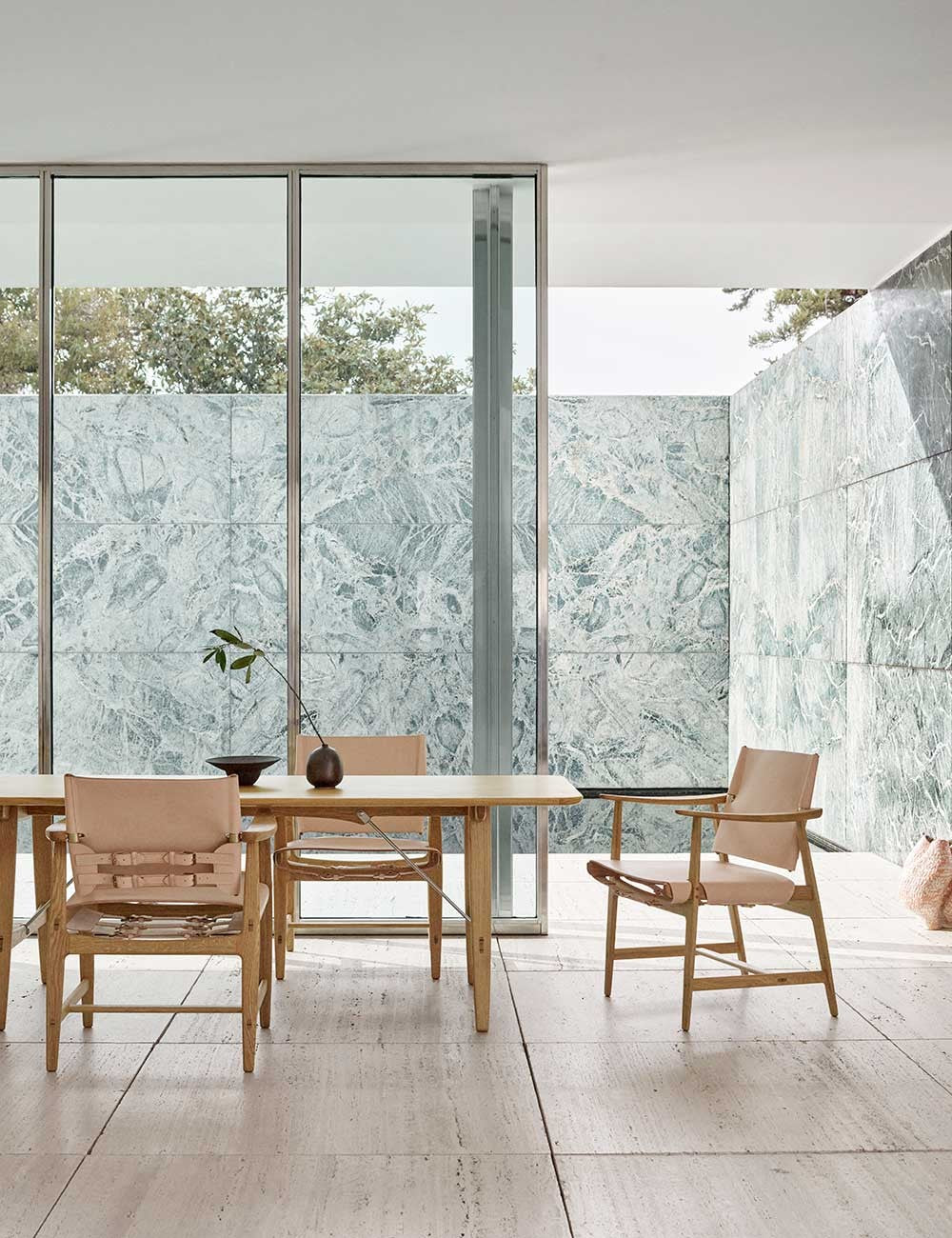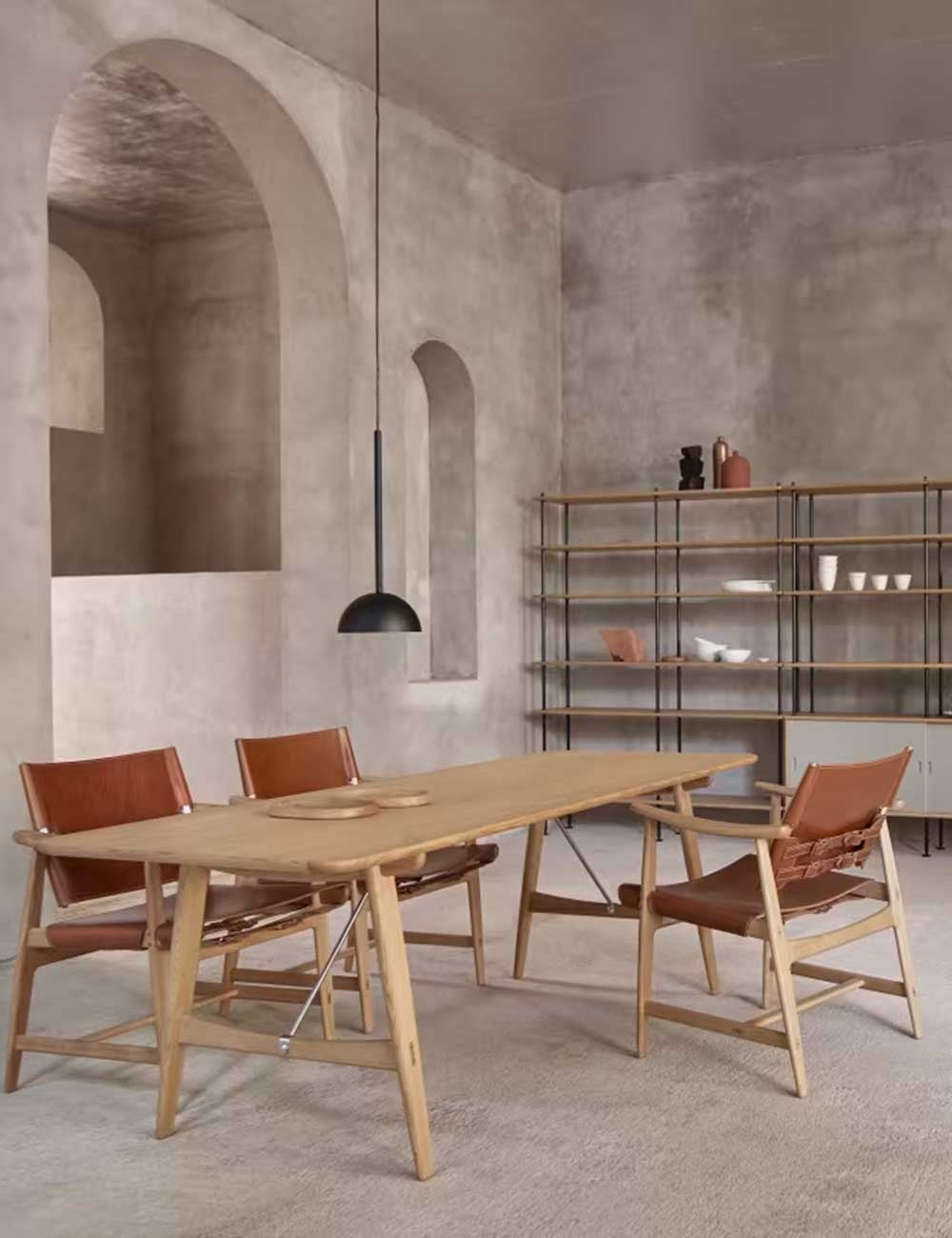 Esta silla, que subraya la importancia de Mogensen para el éxito de la modernidad danesa, ayudó a definir su estilo. Con sus materiales de primera calidad y su artesanía atemporal, la silla es ideal para un contexto moderno, ya que su carácter versátil perdurará durante generaciones.