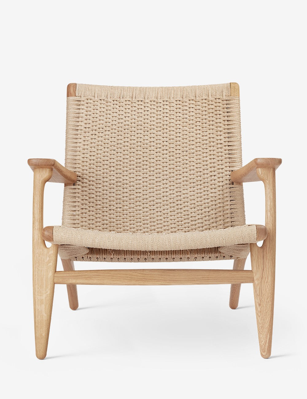 CH25, como muchos otros diseños icónicos de Hans J. Wegner, es limpio y sencillo en su forma distintiva. Pero su introducción causó revuelo por la elección de Wegner de los materiales del respaldo y el asiento.