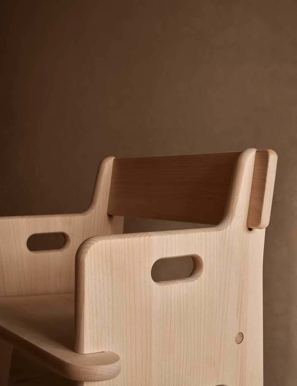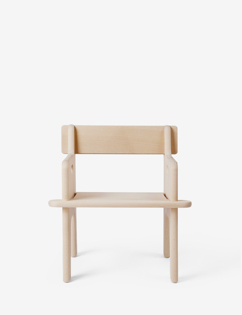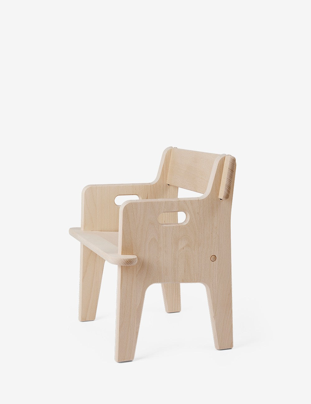 Wegner, un ebanista consumado, concibió y construyó una silla sencilla pero ingeniosa que serviría tanto de mueble funcional como de juguete atractivo. Diseñada como un rompecabezas tridimensional a tamaño natural en madera de haya sin tratar, la silla y la mesa se montan fácilmente sin necesidad de herramientas, para gran entusiasmo de niños y adultos.