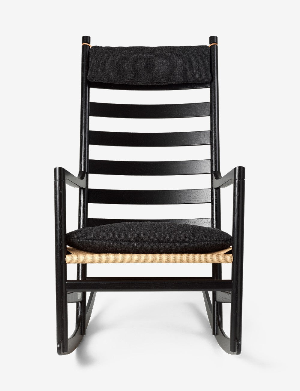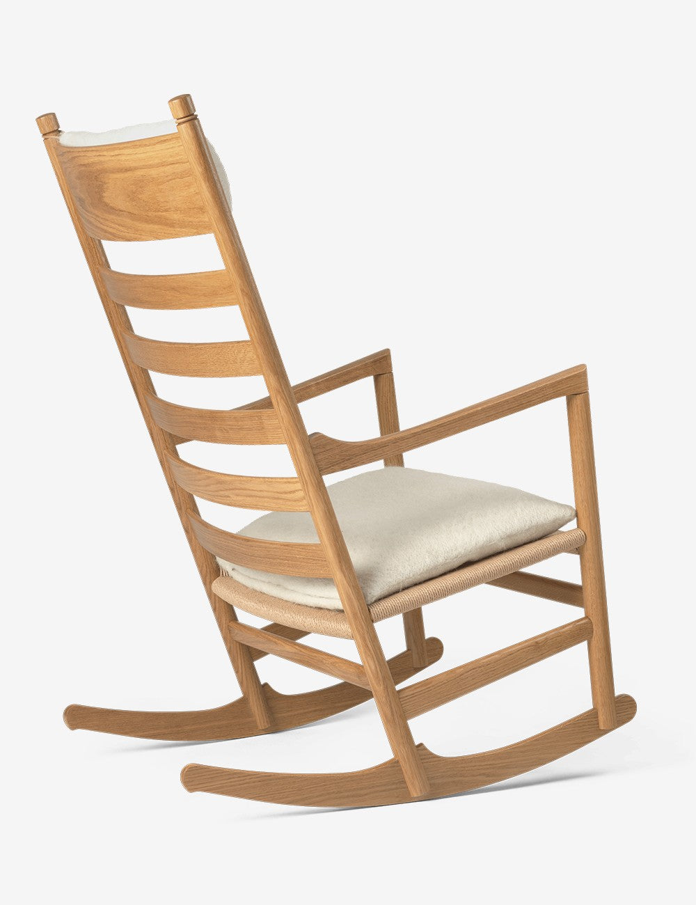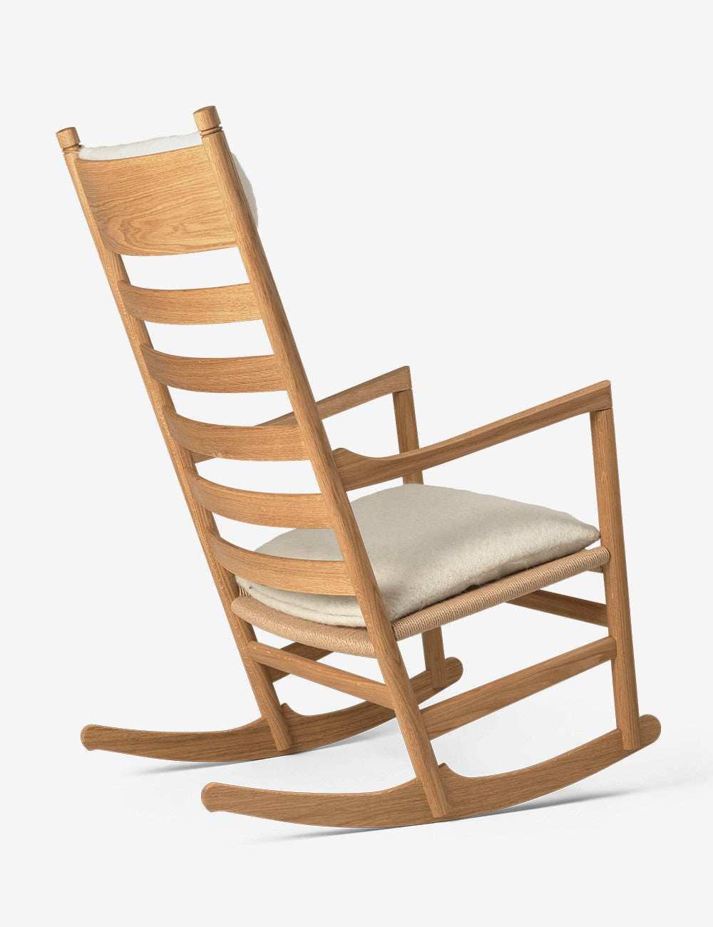 Perfectamente proporcionada, la mecedora CH45 tiene una expresión dinámica para sentarse, mecerse y levantarse sin esfuerzo.