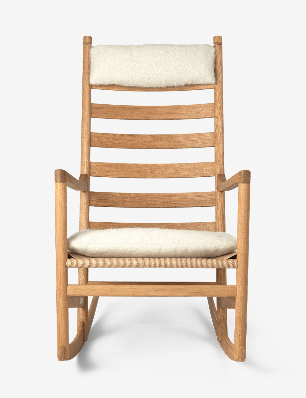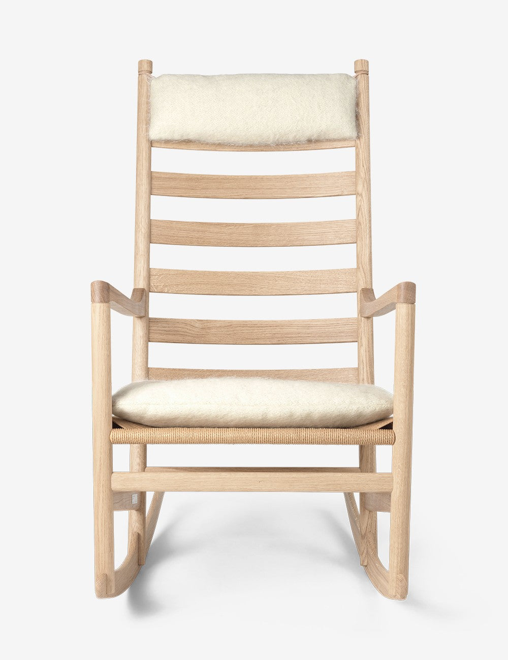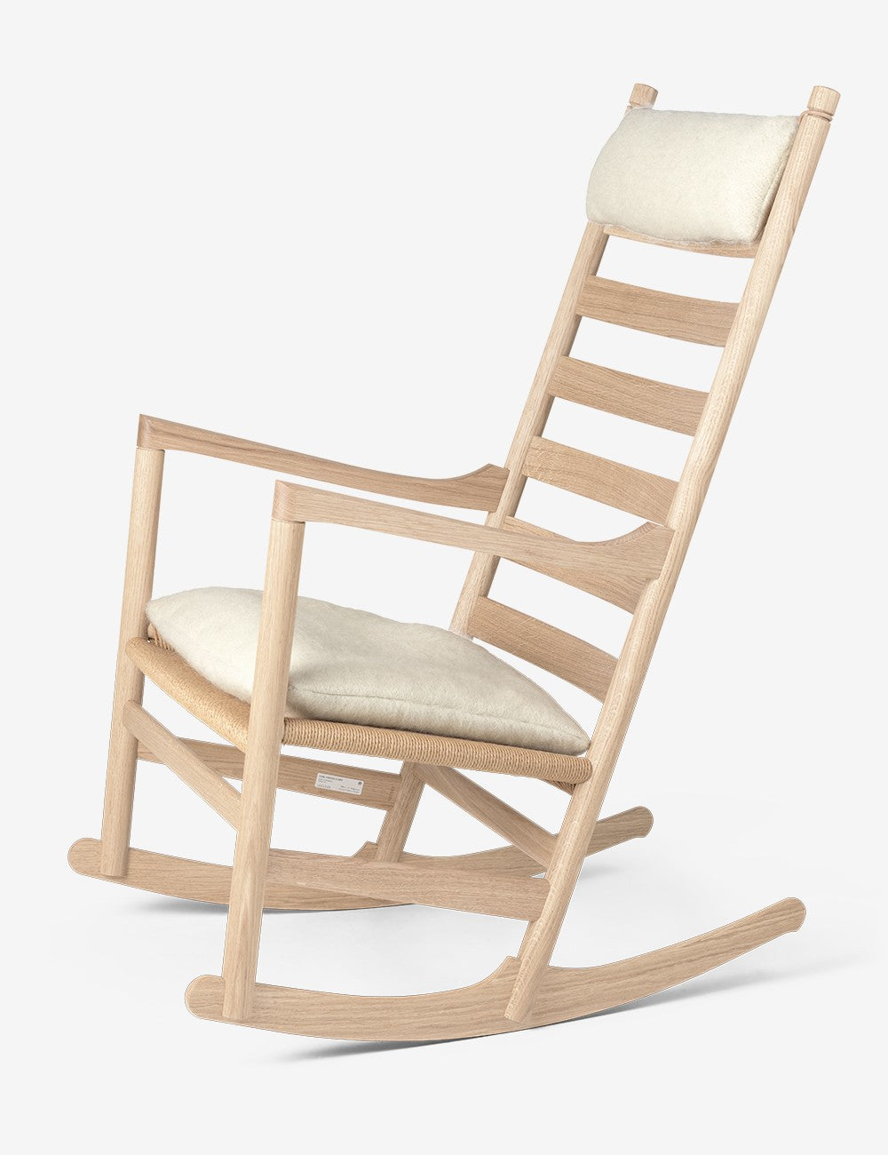 Diseñada en 1965, la mecedora CH45 forma parte de una serie más amplia diseñada por Wegner para Carl Hansen & Søn, que incluye la butaca CH44, las sillas de comedor CH46 y CH47 y el taburete CH53, que siguen fabricándose en la actualidad.