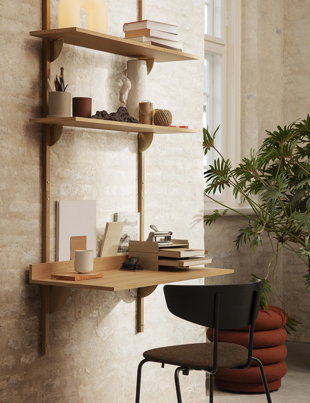 • Estantería de pared y escritorio de la línea Sector de Ferm Living.