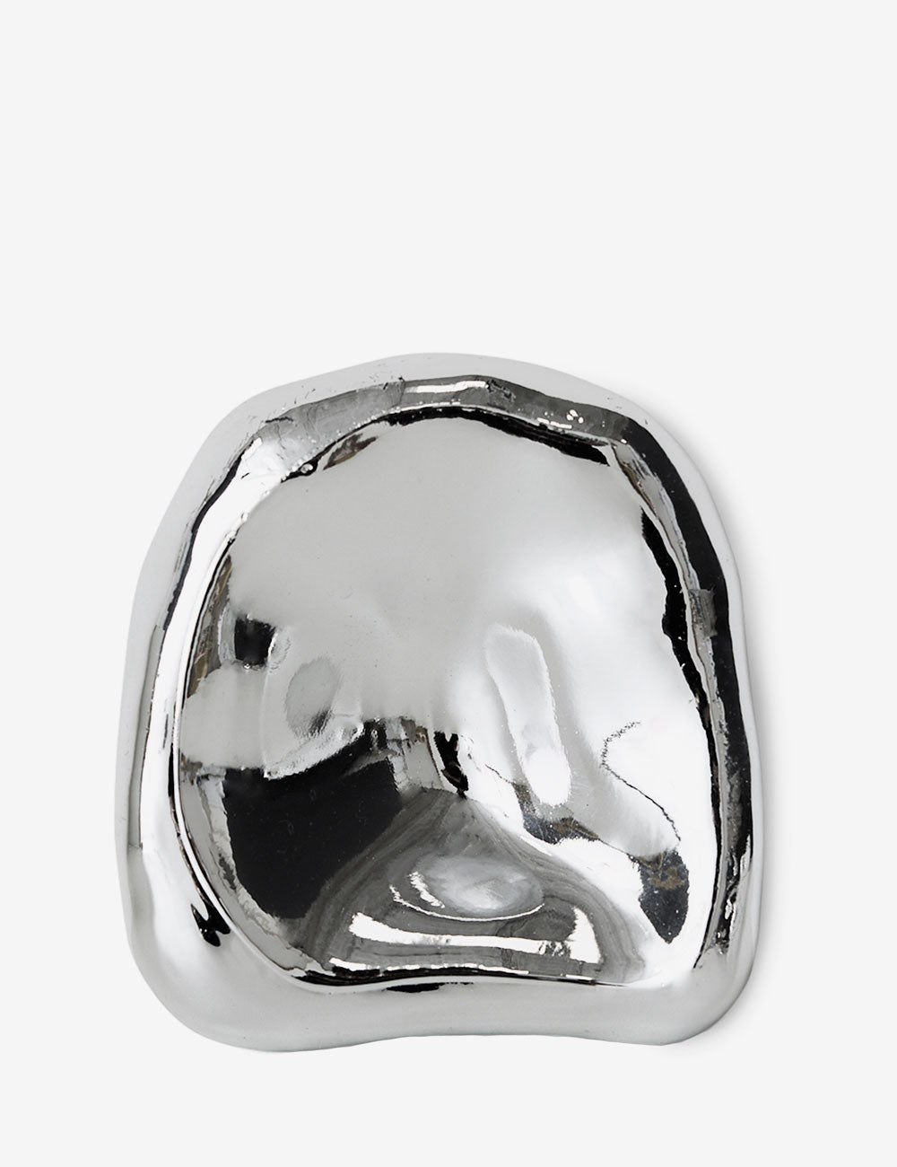 - Forma orgánica y fluida, con efecto reflectante que cambia con la luz.