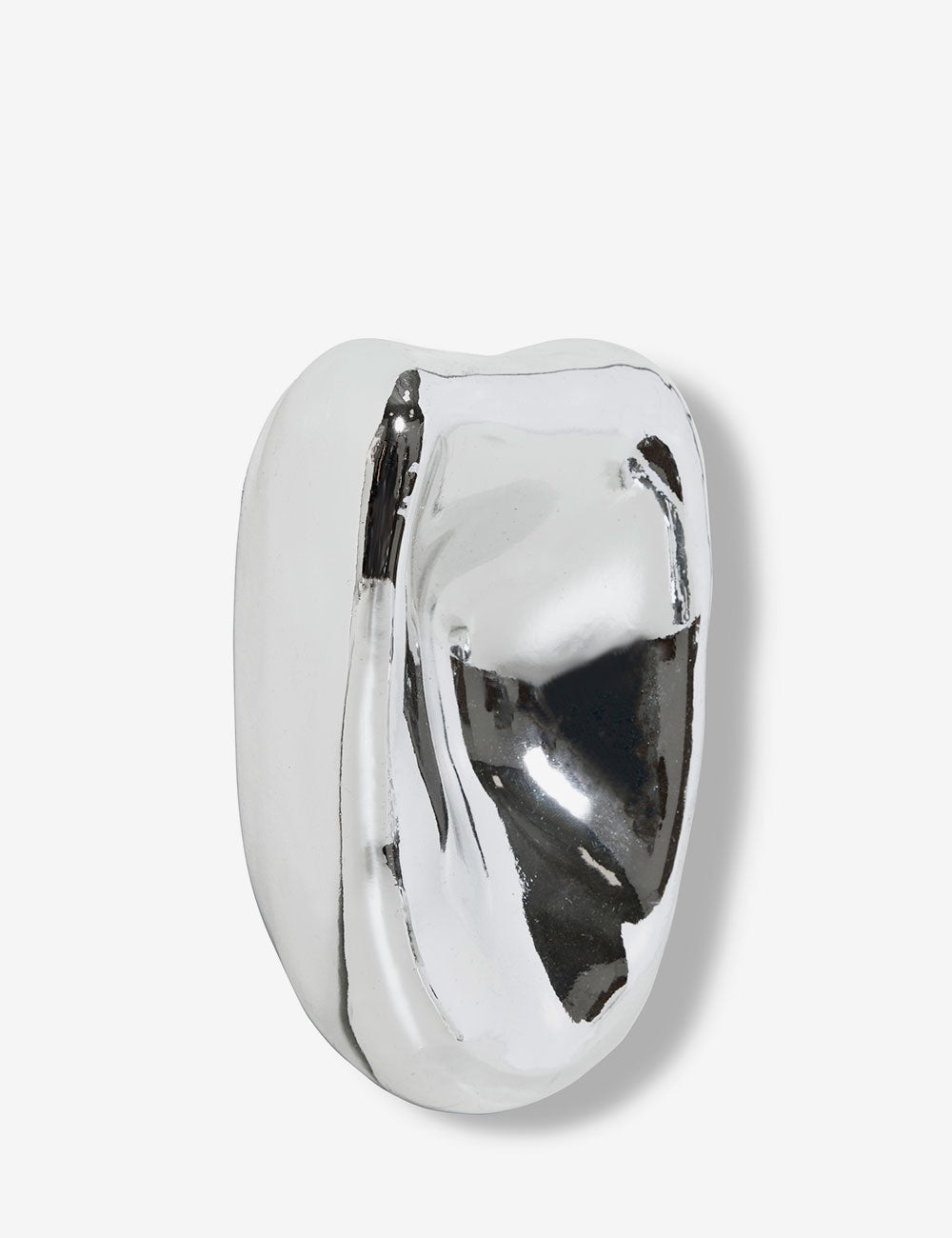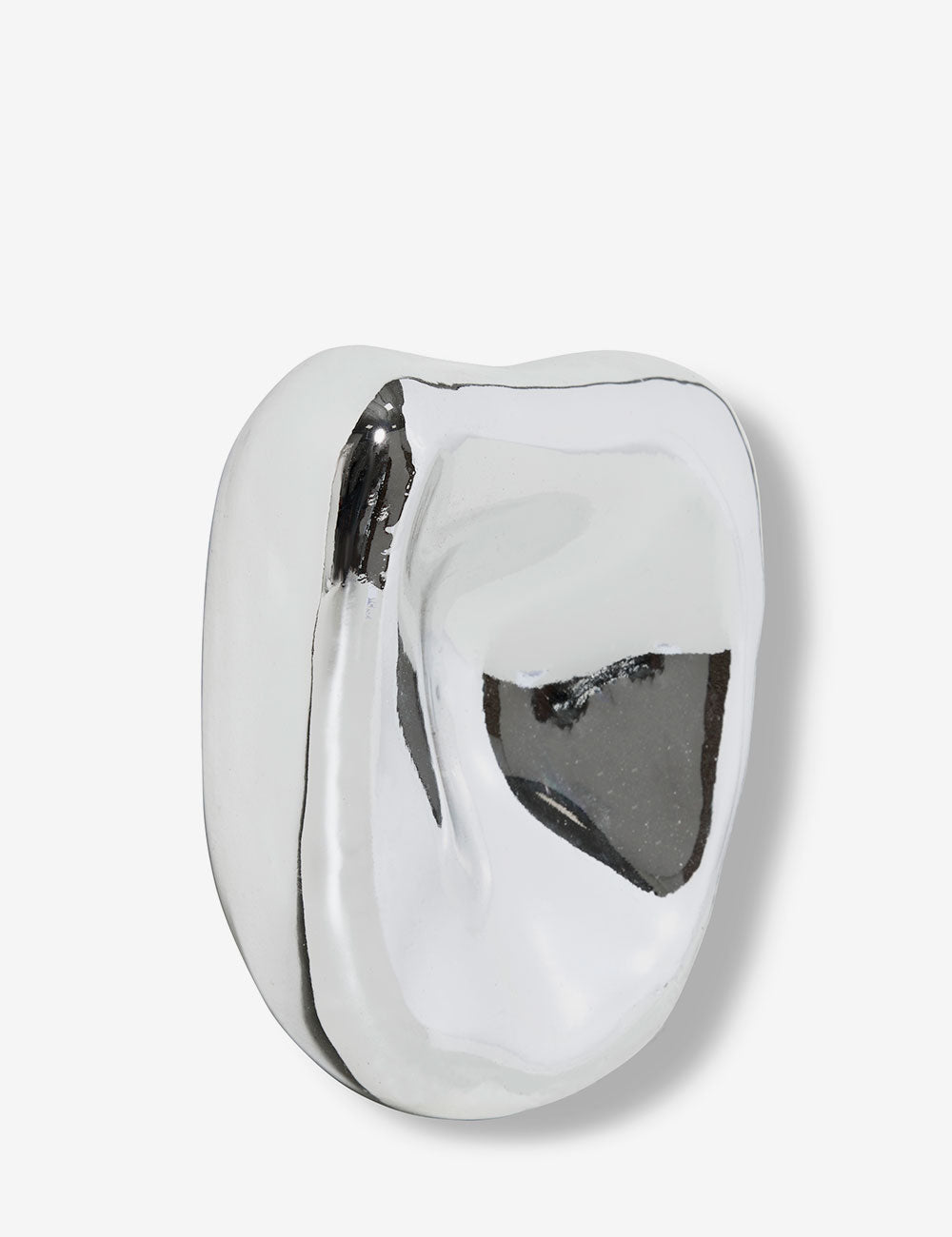 Esta escultura de pared con acabado cromado atrapa la luz en cada curva.