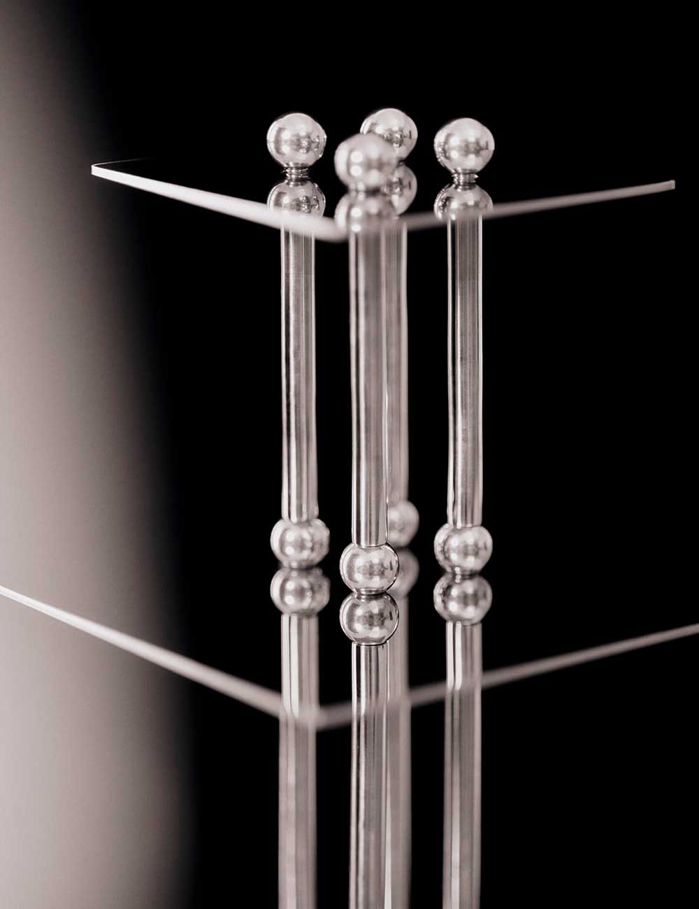 La Orbelle Etagere está fabricada en acero inoxidable pulido a espejo, aportando una presencia luminosa y reflectante a la mesa. Su diseño combina una expresión contemporánea y clásica, añadiendo un toque refinado a cualquier reunión diaria. Ideal para servir o exhibir, su estructura en niveles invita a la superposición de elementos, mientras que la superficie brillante capta la luz de forma espectacular. La étagère se entrega desmontada para facilitar el transporte.