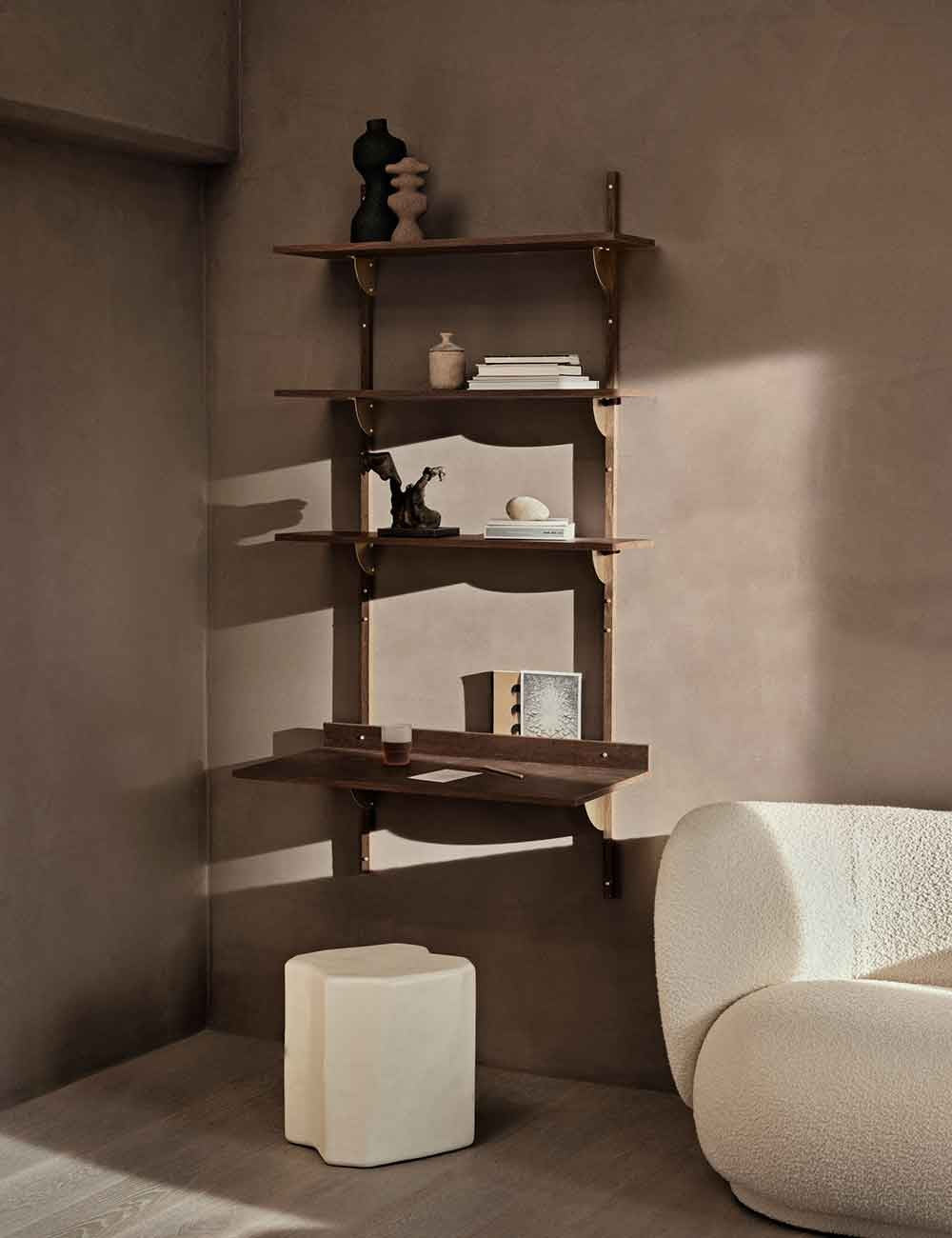 - Estantería de pared y escritorio de la línea Sector de Ferm Living.