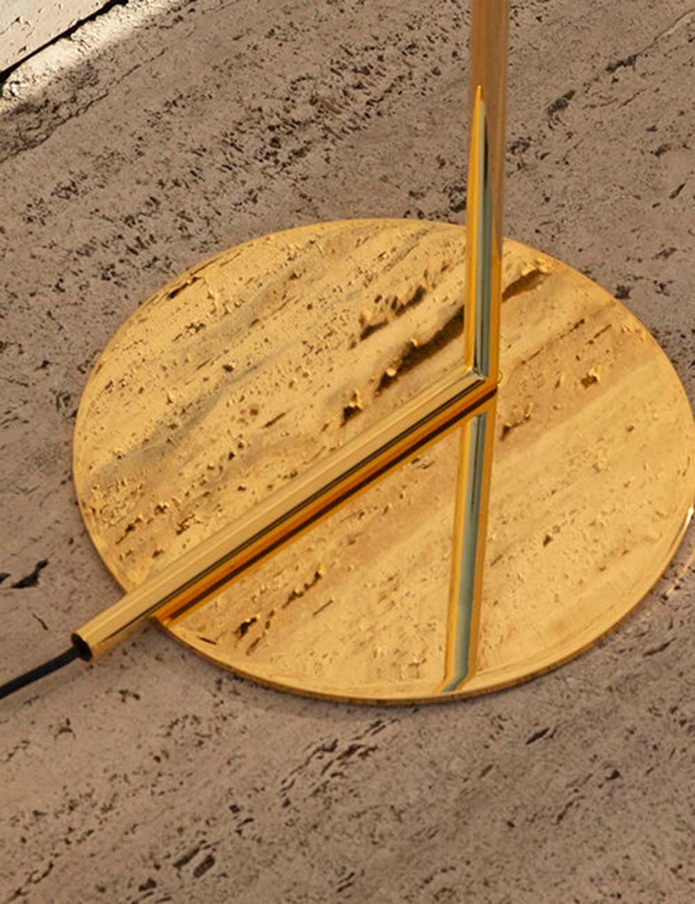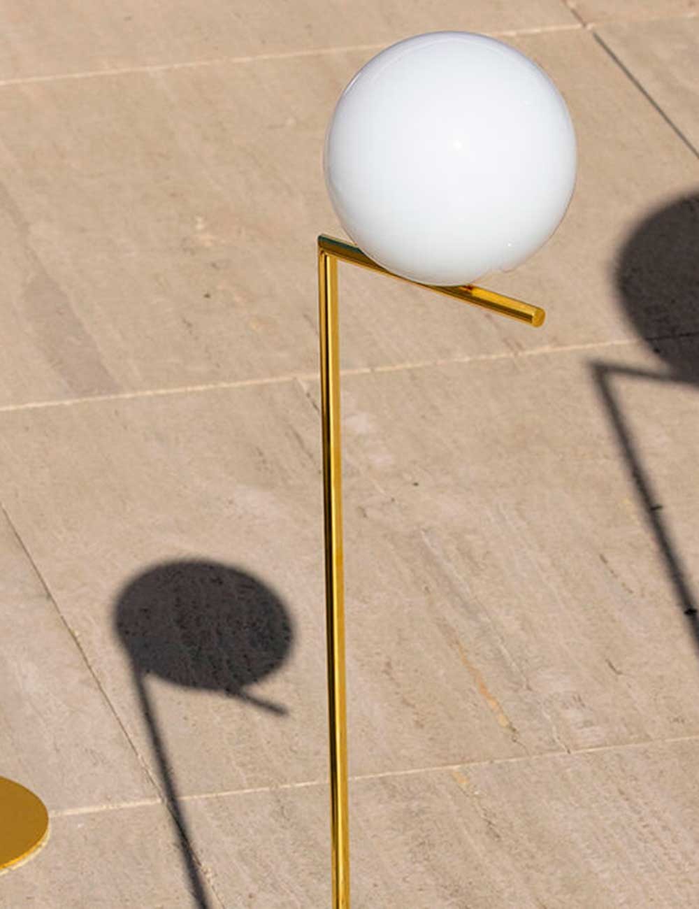 El diseño de IC Lights está compuesto por una pantalla  esférica de cristal soplado y una ligera estructura metálica bañada en oro de 24 quilates.