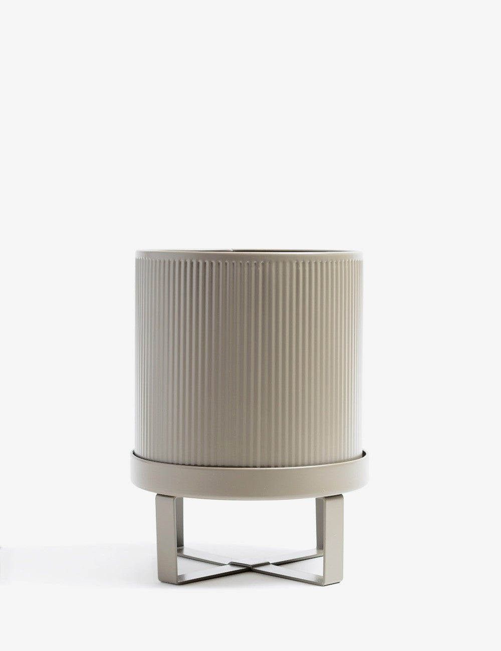 Inspirado en la arquitectura de Bauhaus, Ferm ha conseguido un clásico muy actual en este macetero metálico.