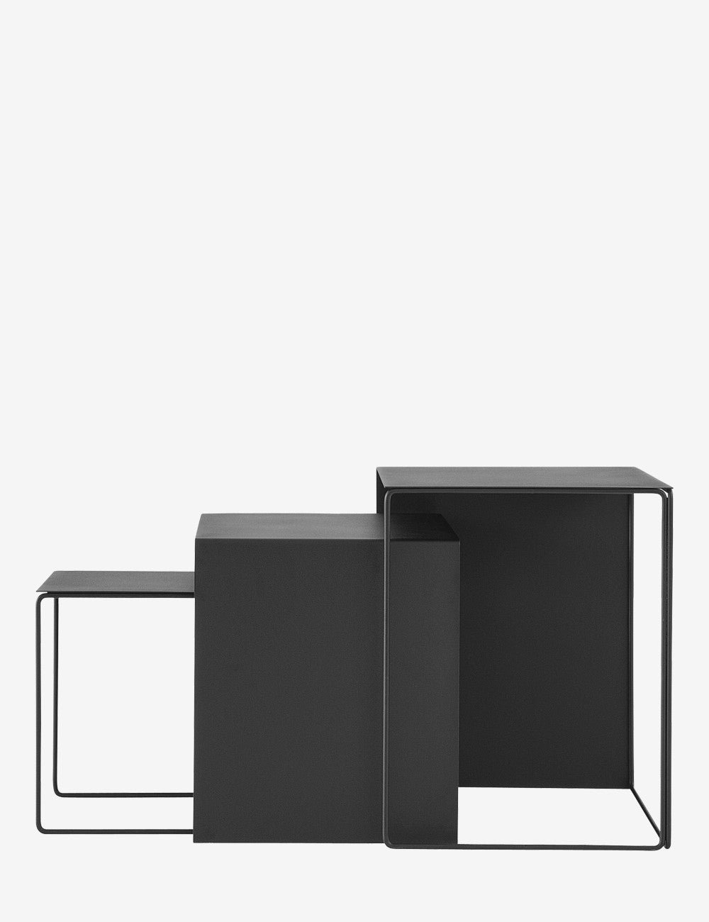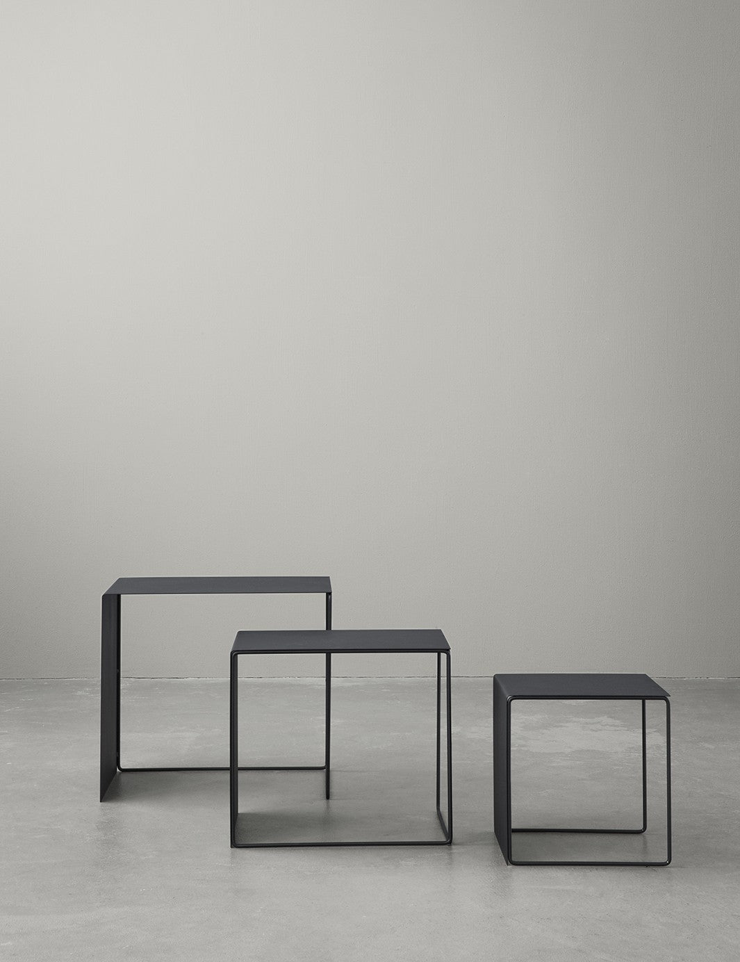 De líneas rectas y formas cuadradas Cluster Tables de Ferm Living son unas mesas auxiliares de estilo minimalista realizadas en metal lacado donde sus ligeras patas contrastan con las solidas tapas.