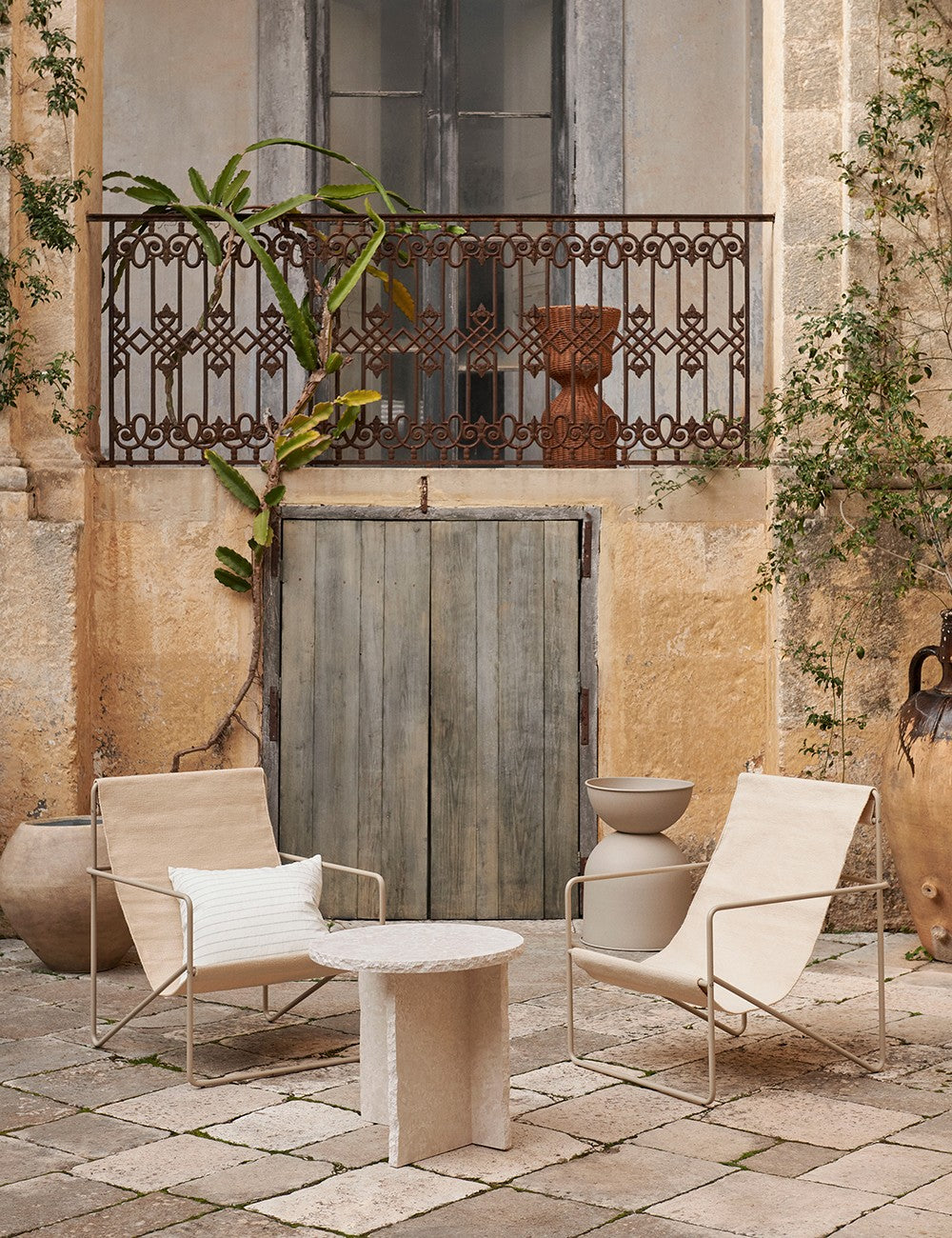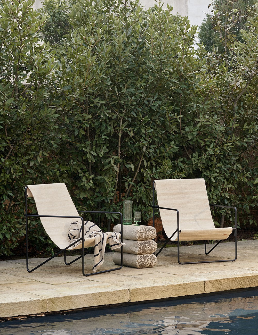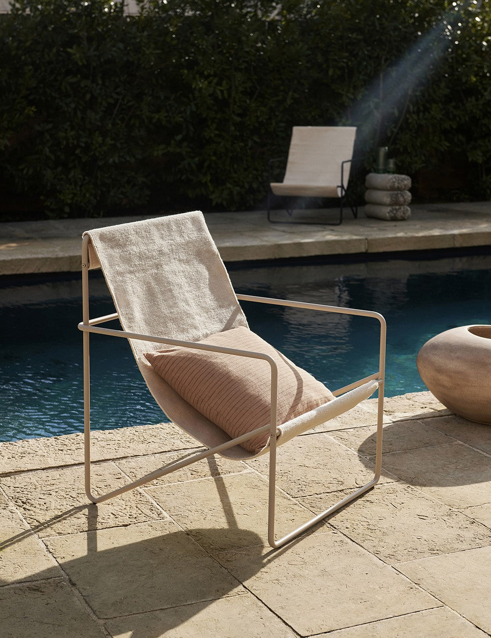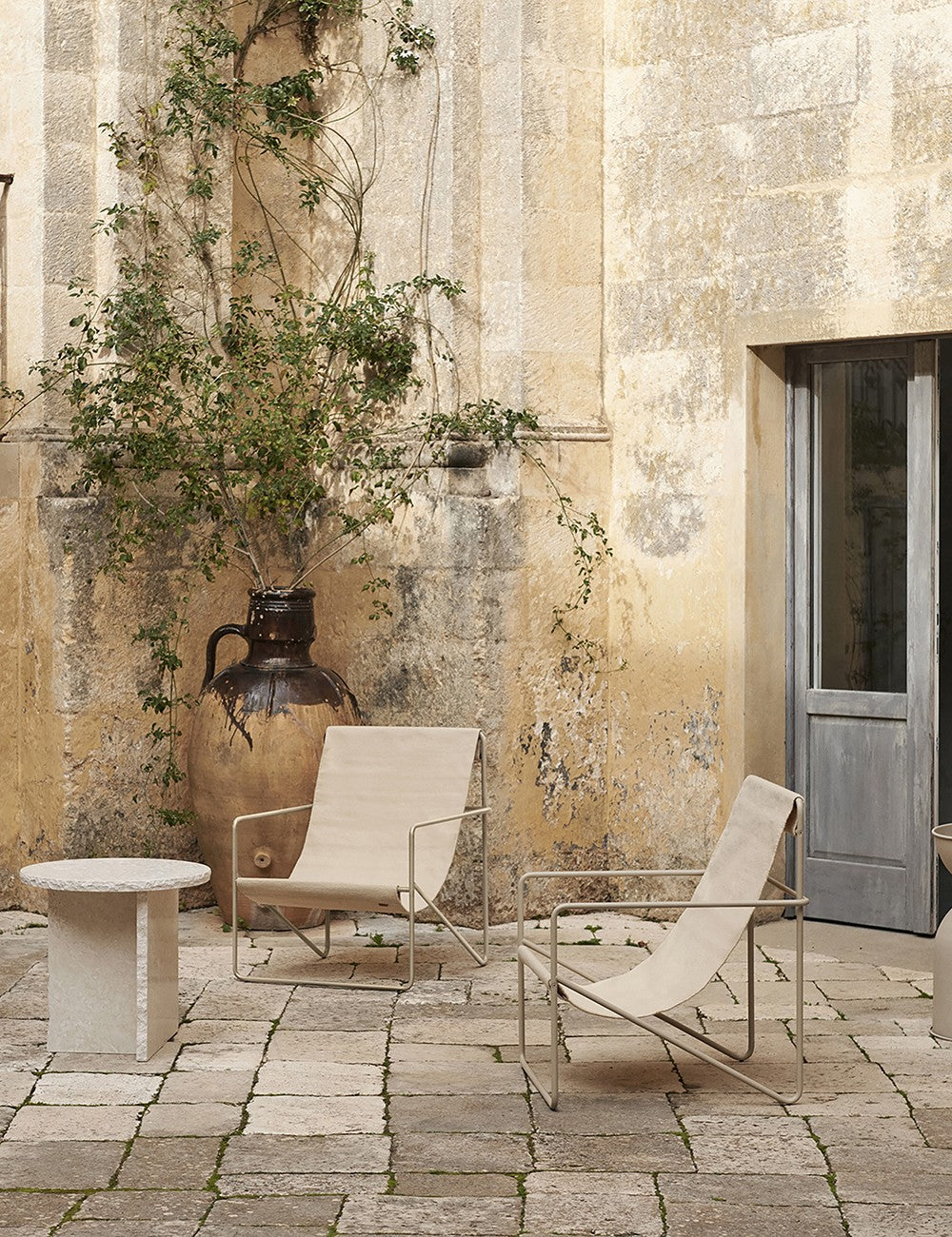 De estilo minimalista y líneas sutiles, Desert Lounge Chair de Ferm Living, se presenta como una opción elegante y sencilla para su uso tanto en interior como exterior.