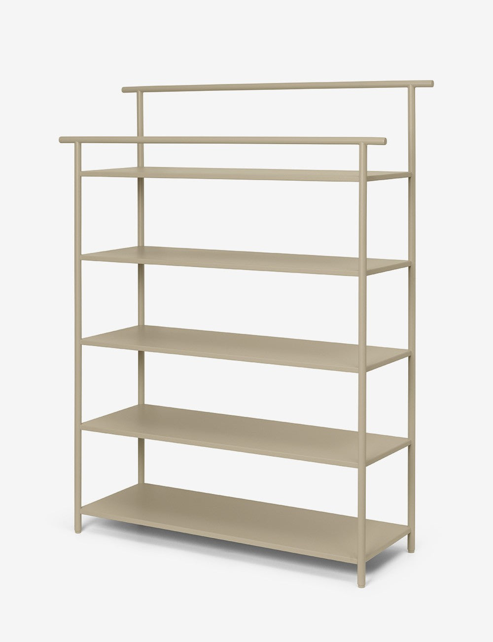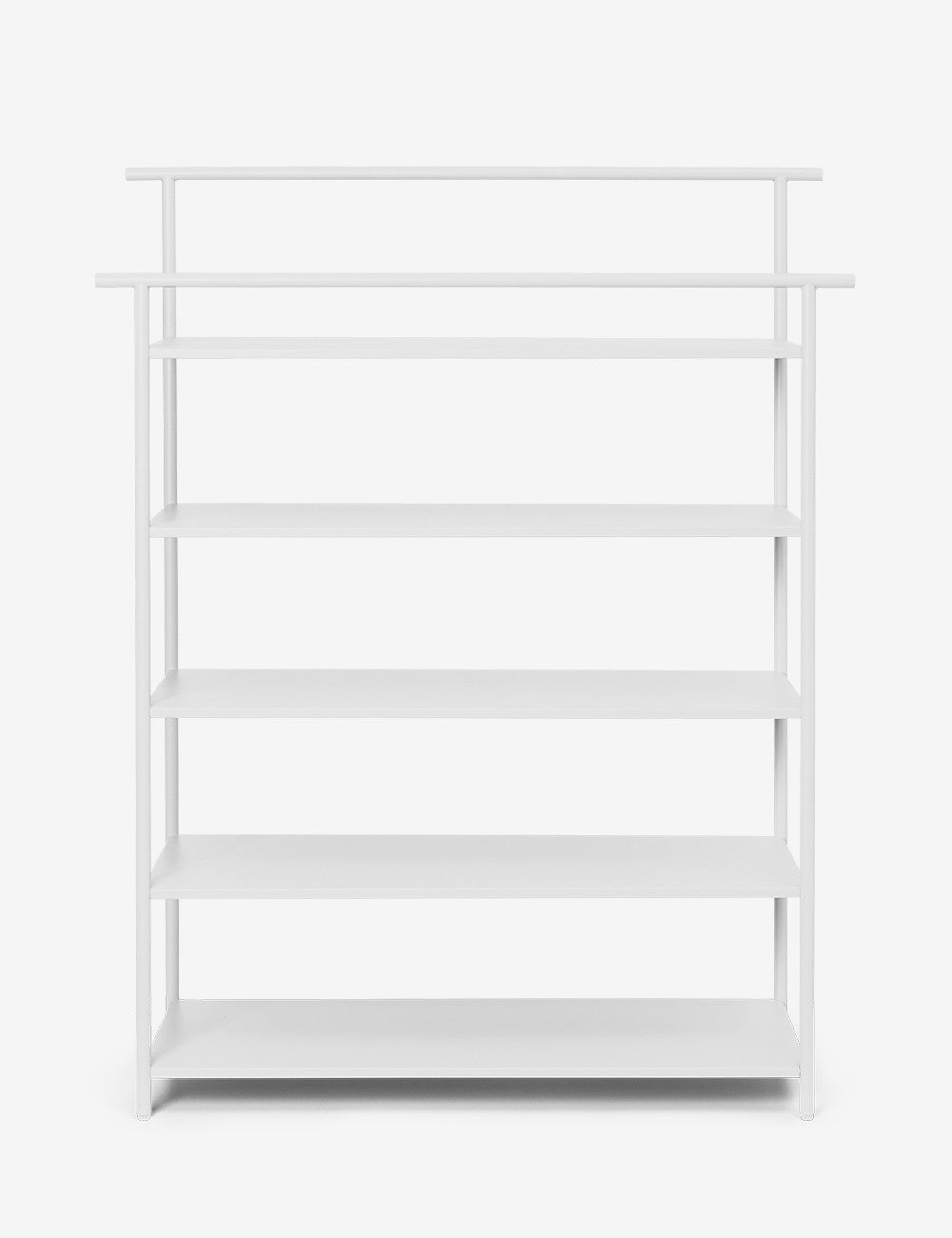 La estantería de suelo Dora cuenta con cinco estantes y dos barras, proporcionando una solución de almacenamiento perfecta, especialmente para espacios reducidos.