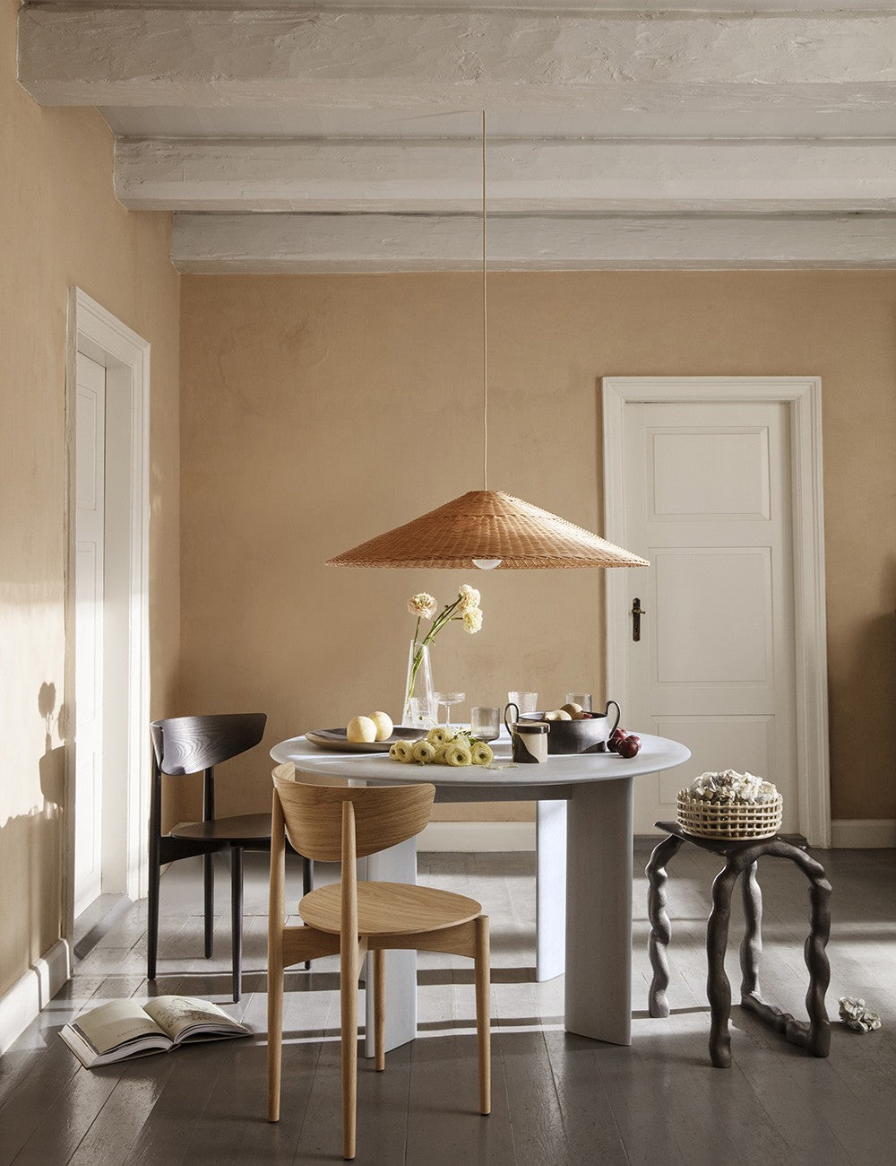 La colección Dou de Ferm Living está compuesta por una serie de lámparas realizadas artesanalmente en ratán.