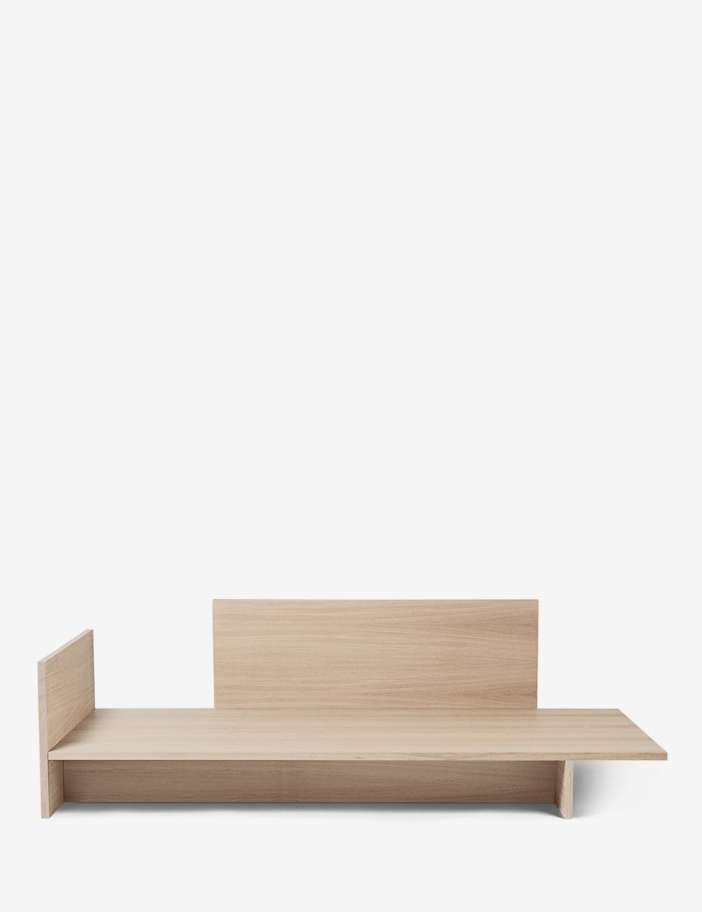 Con un nombre derivado de la palabra japonesa esquina, el diseño de Kona, juega con una serie de paneles a diferentes alturas creando una cama practica y a su vez visualmente ligera.