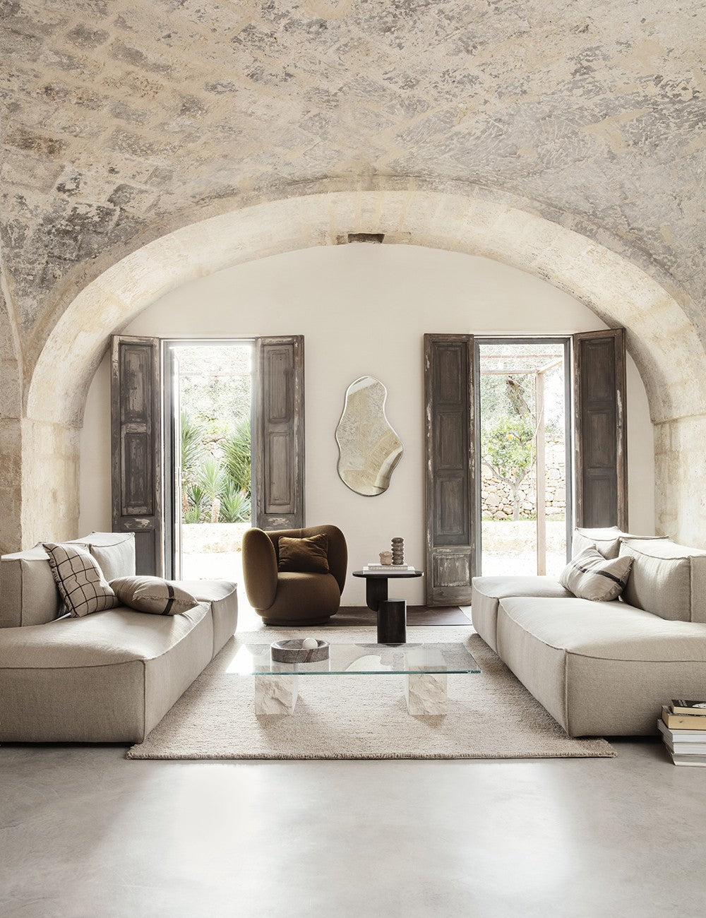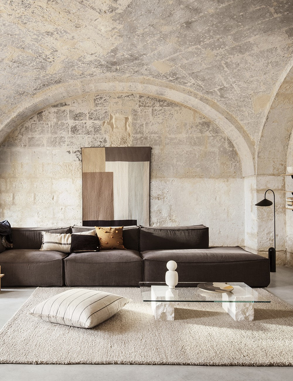 Mineral Coffee Table. de Ferm Living. casa a la perfección dos materiales totalmente opuestos creando una mesa de centro de aspecto orgánico y líneas arquitectónicas.