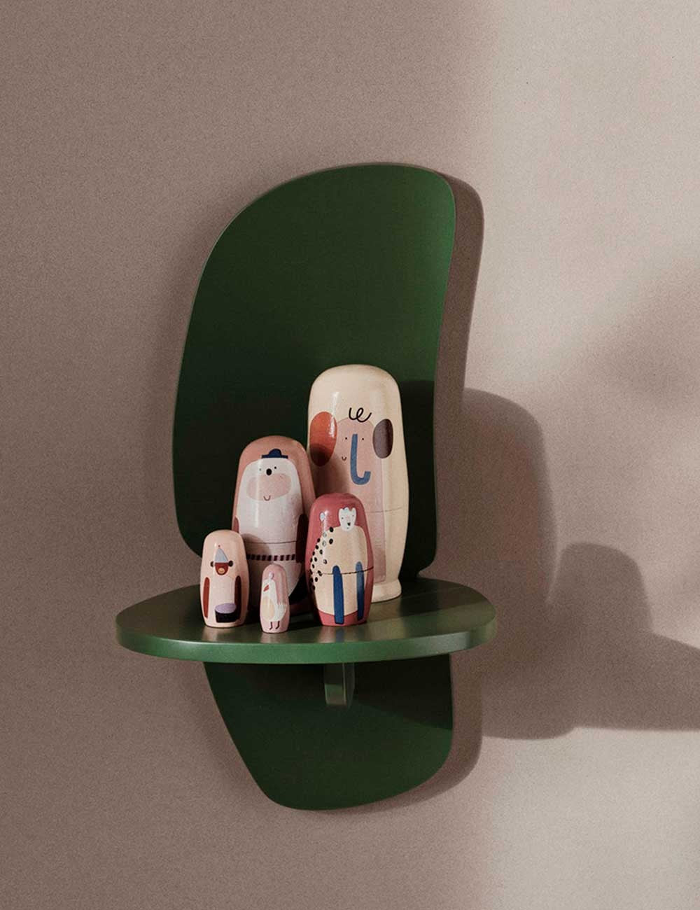 Eleva el espacio de tu pequeño con la librería Pilu, una pequeña pieza de pared de diseño contemporáneo y carácter orgánico.