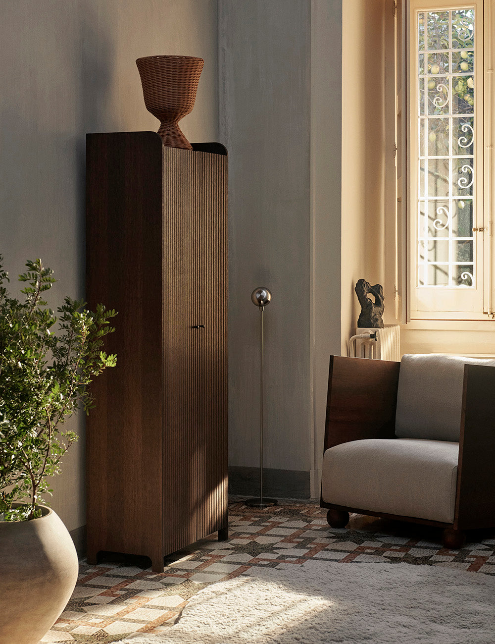 El nombre de Sill proviene de la palabra francesa "sillon" que significa surco o ranura, y partiendo de esta idea, Ferm Living, ha creado un mueble donde sus puertas talladas y esquinas redondeadas dan como resultado un armario elegante y visualmente ligero.
