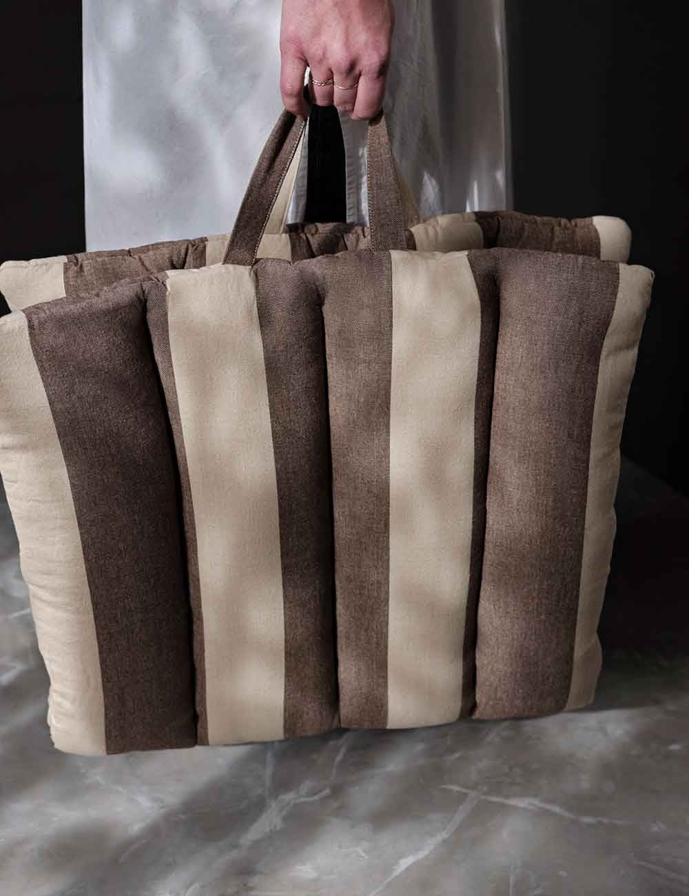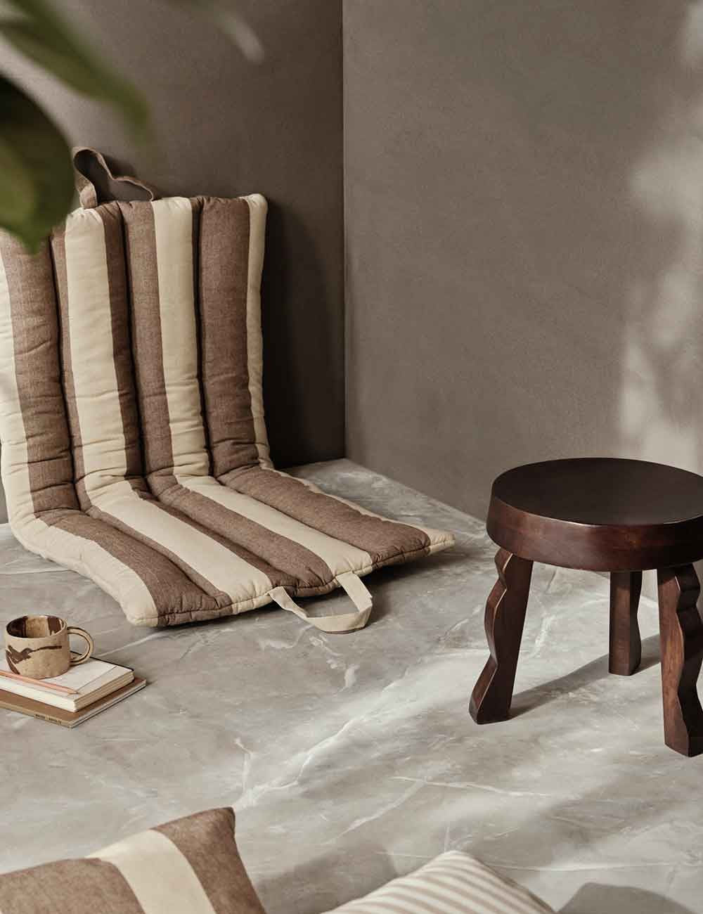 La colección Strand de Ferm Living está compuesta por una serie de textiles con un patrón de rayas anchas en tonos cálidos.