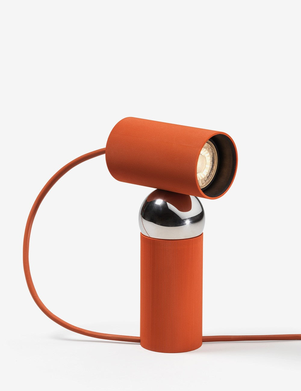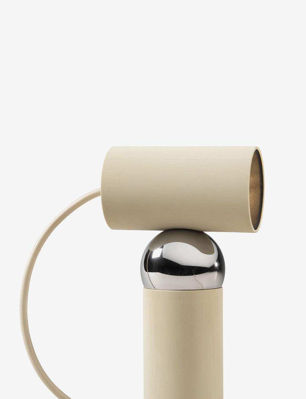 Bilboquet está compuesta por dos cilindros conectados por una esfera magnética que actúa como articulación y permite que el cilindro superior gire, dirigiendo la fuente de luz a la posición que se desee.