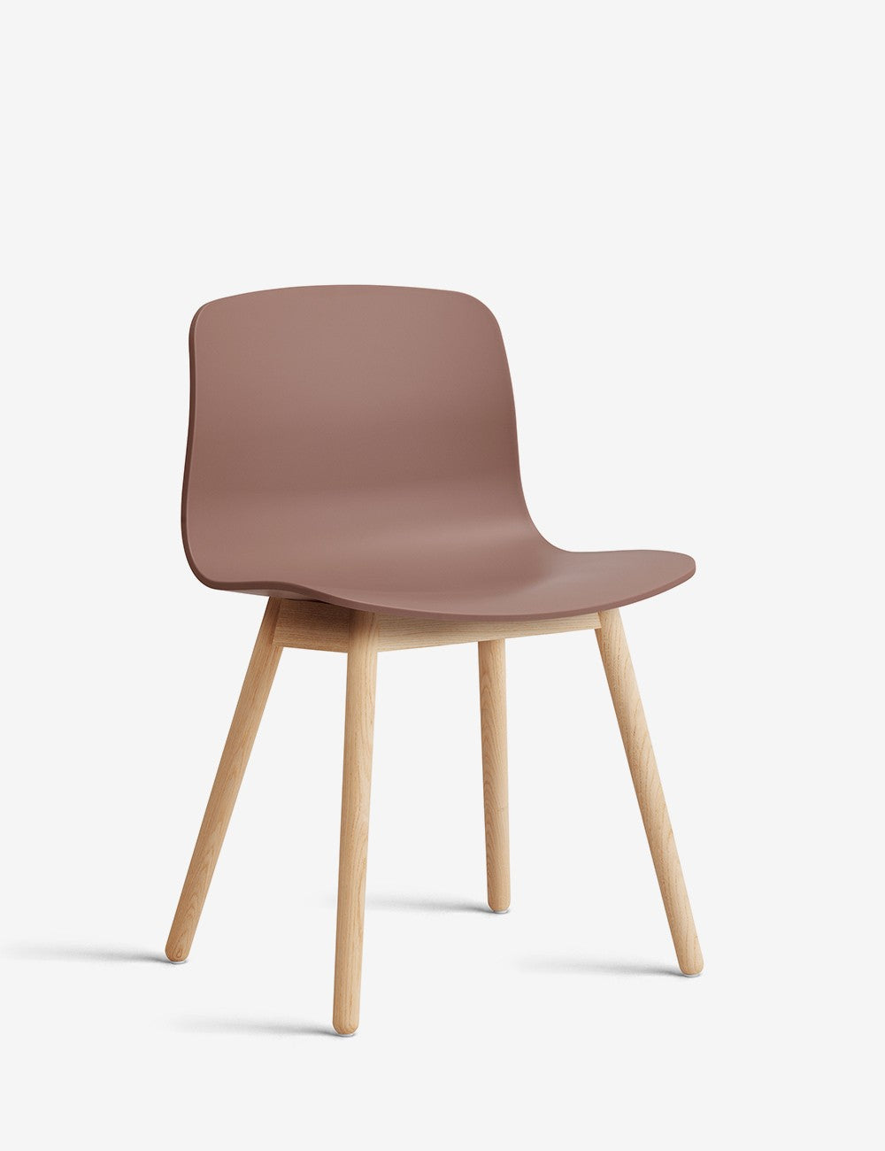 El asiento aerodinámico de la silla está fabricado con polipropileno reciclado postconsumo, y su armazón de madera es de roble o nogal y está acabado con una laca al agua respetuosa con el medio ambiente.
