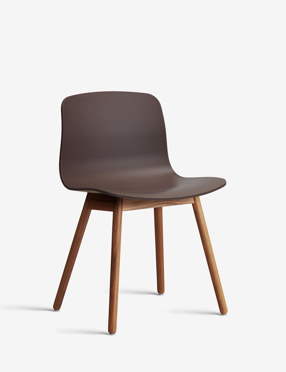 El asiento aerodinámico de la silla está fabricado con polipropileno reciclado postconsumo, y su armazón de madera es de roble o nogal y está acabado con una laca al agua respetuosa con el medio ambiente.