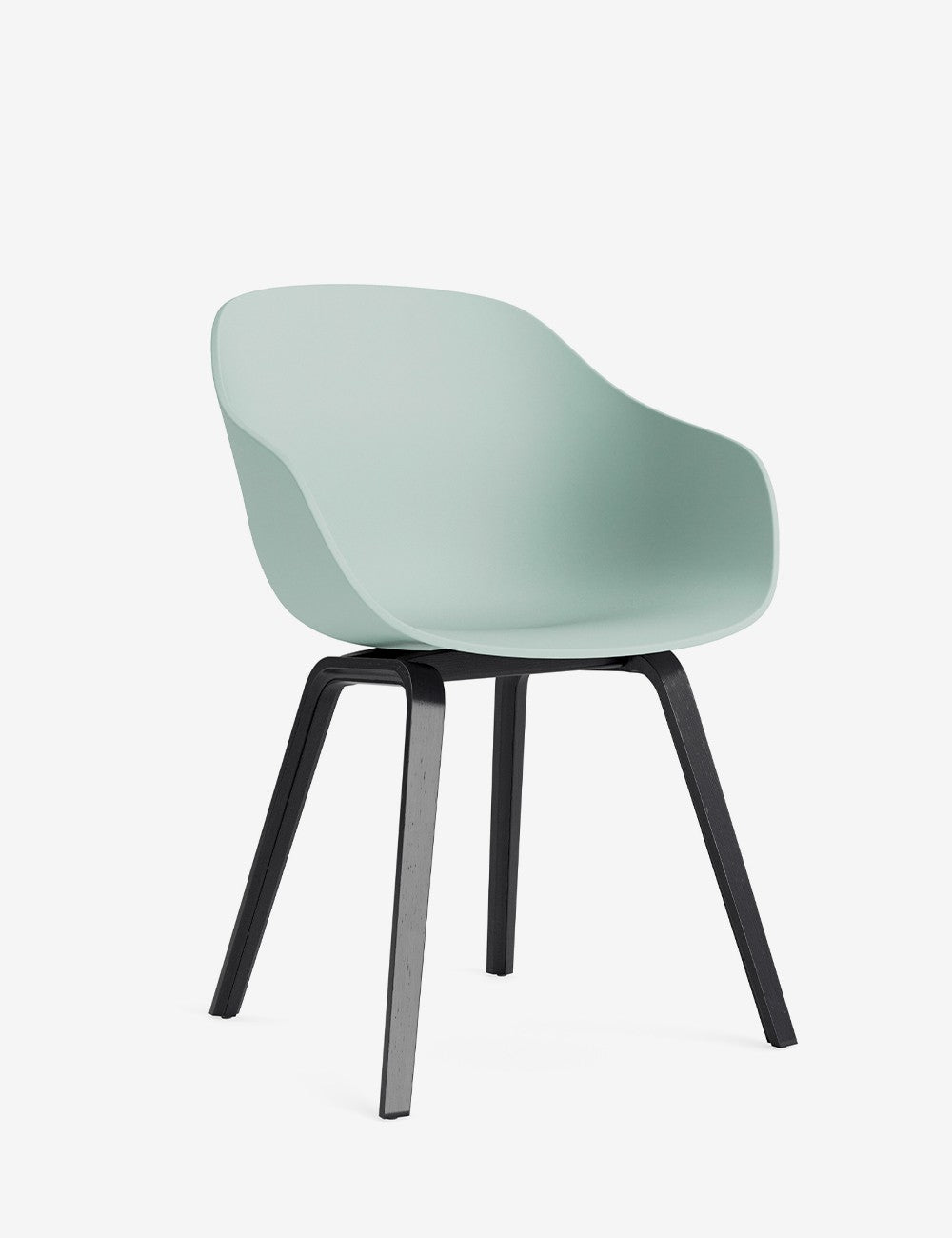 El asiento aerodinámico de la silla está fabricado con polipropileno reciclado postconsumo, y su armazón de madera es de roble o nogal y está acabado con una laca al agua respetuosa con el medio ambiente.