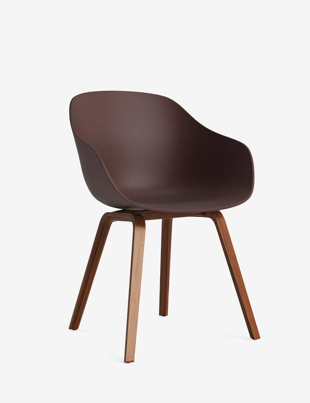 El asiento aerodinámico de la silla está fabricado con polipropileno reciclado postconsumo, y su armazón de madera es de roble o nogal y está acabado con una laca al agua respetuosa con el medio ambiente.