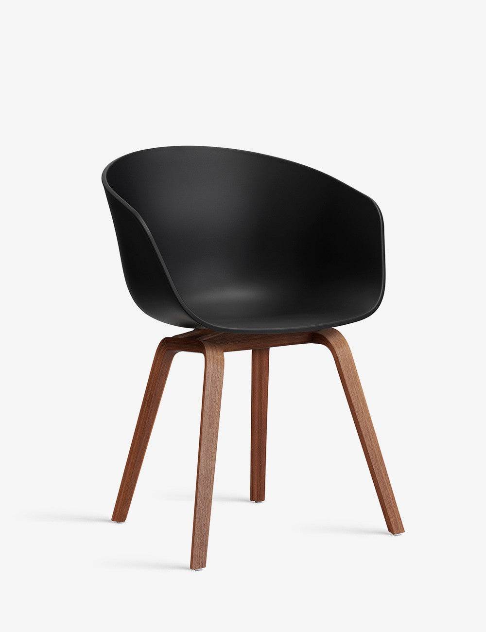 El asiento aerodinámico de la silla está fabricado con polipropileno reciclado postconsumo, y su armazón de madera es de roble o nogal y está acabado con una laca al agua respetuosa con el medio ambiente.