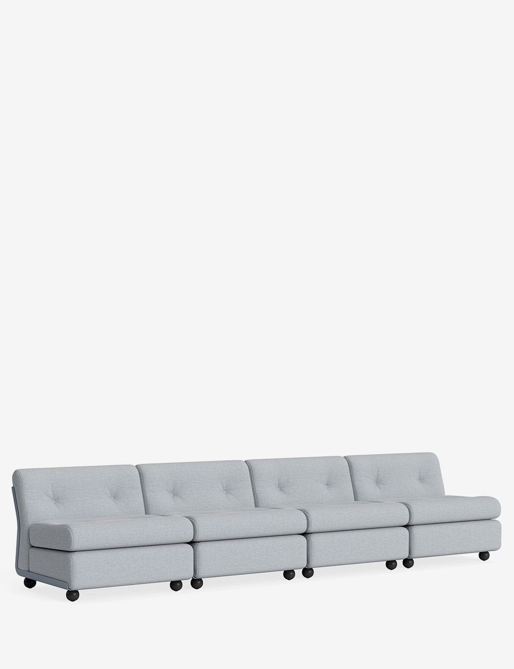 El sofá Amanta se puede configurar como un módulo único o en formatos preconfigurados de 2, 3 o 4 plazas, adaptándose a diferentes espacios domésticos y públicos.