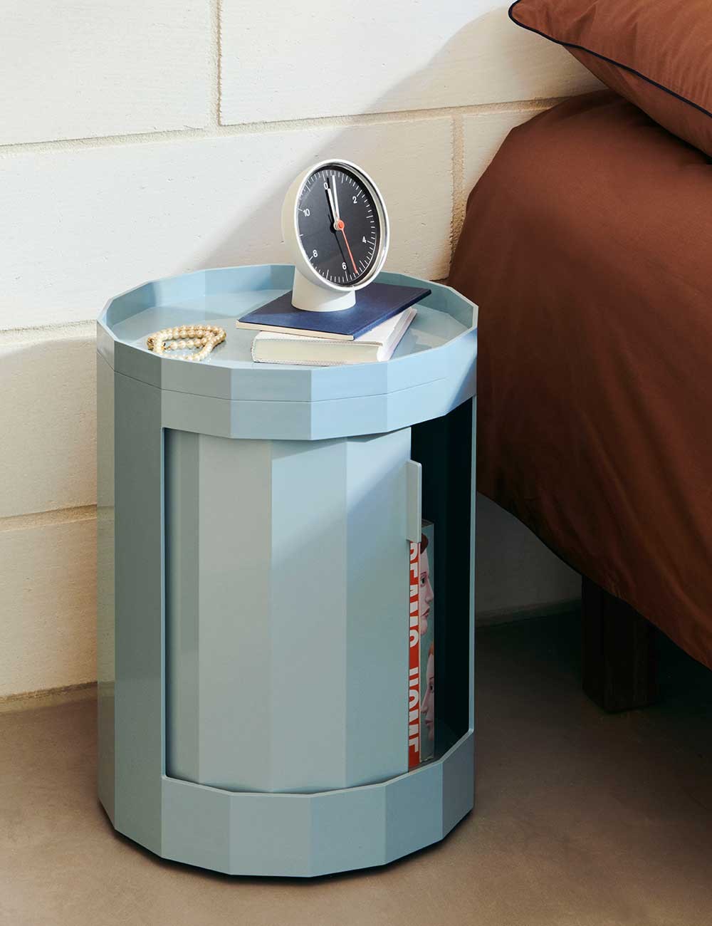 Facet combina el atractivo visual con una gran funcionalidad. Con una puerta giratoria integrada y ruedas adicionales, Facet está diseñado para ser adaptable, desde mesilla de noche en el dormitorio y mesa auxiliar en el salón hasta organizador de papelería en la oficina doméstica.
