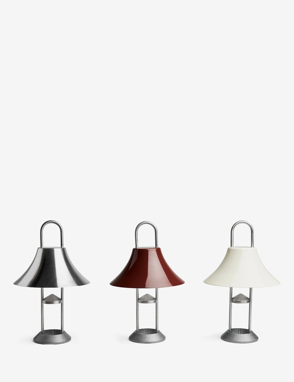 La lámpara portátil Mousqueton diseñada por Inga Sempé para HAY se presenta como una solución de iluminación funcional con una estética familiar pero contemporánea, perfecta para su uso en exteriores e interiores.
