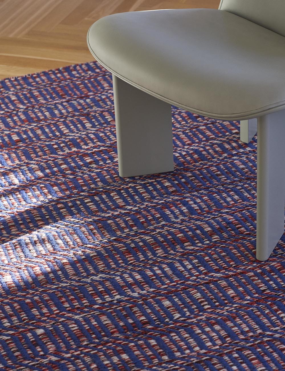 Radio Rug de HAY, es una rica alfombra de lana de Nueva Zelanda en mezcla con algodón con los bordes cosidos.