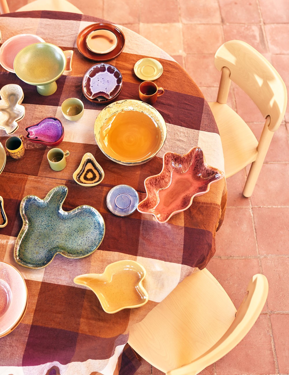 Shell de hkliving está compuesto por una serie de cuencos, platos y utensilios realizados en cerámica esmaltada.
