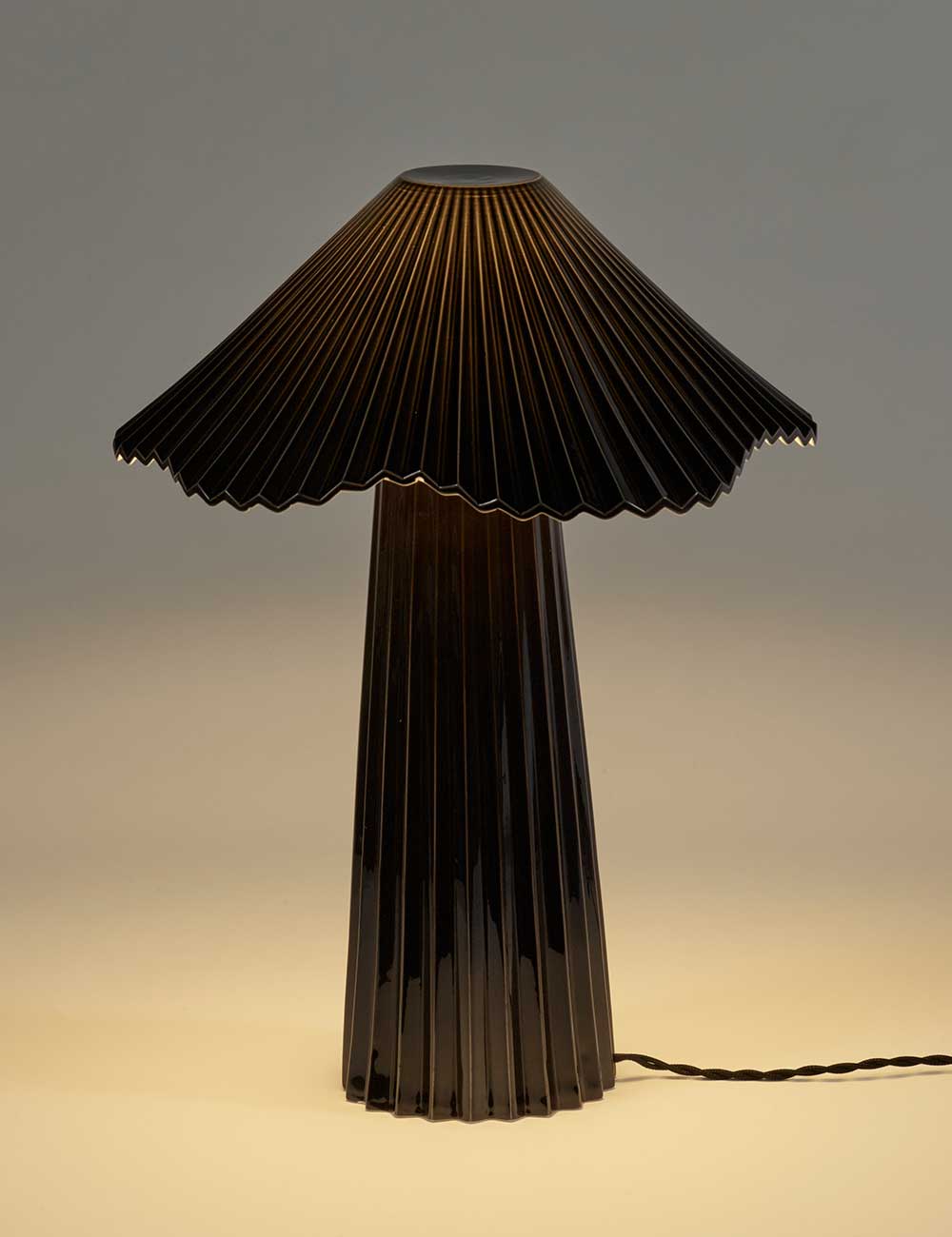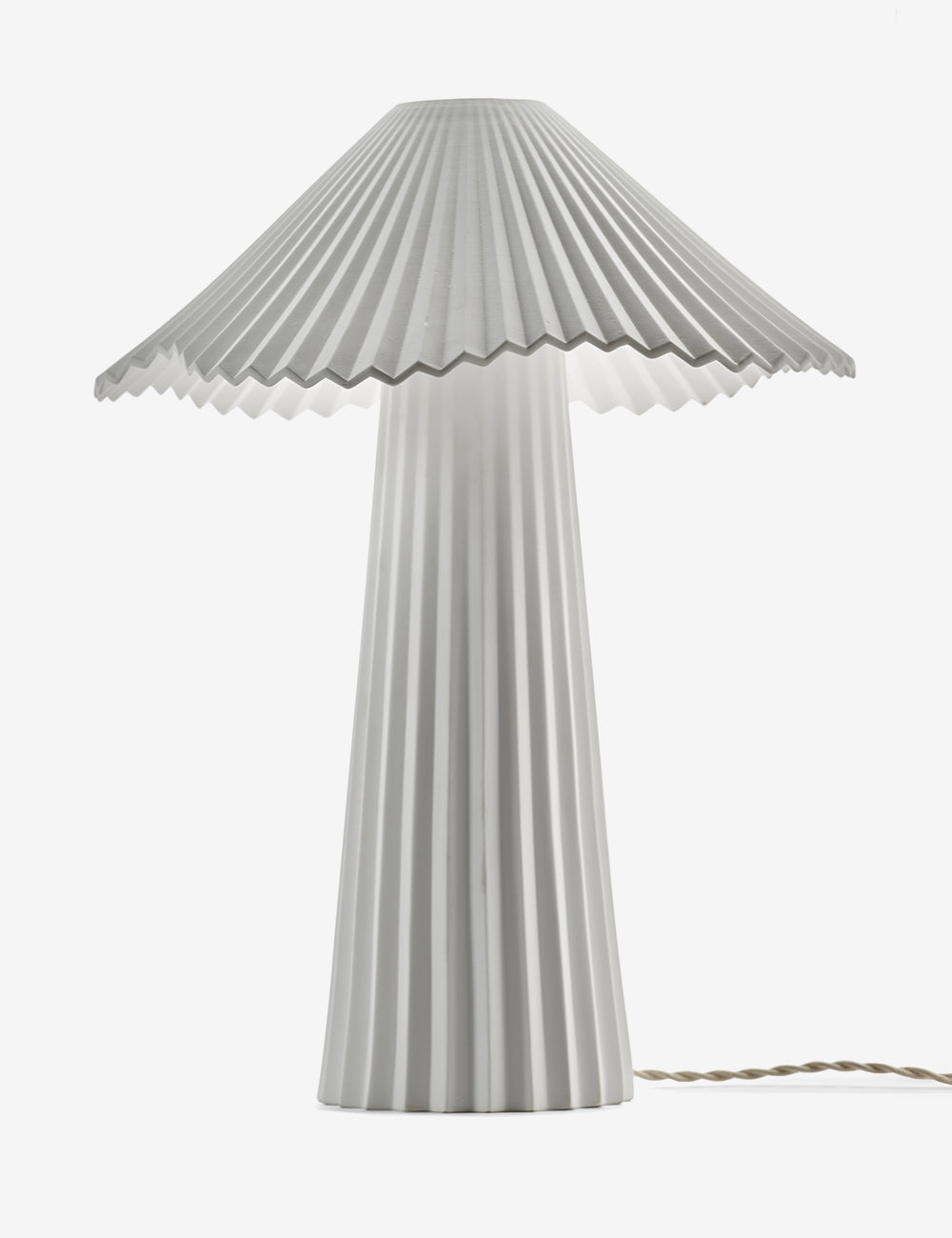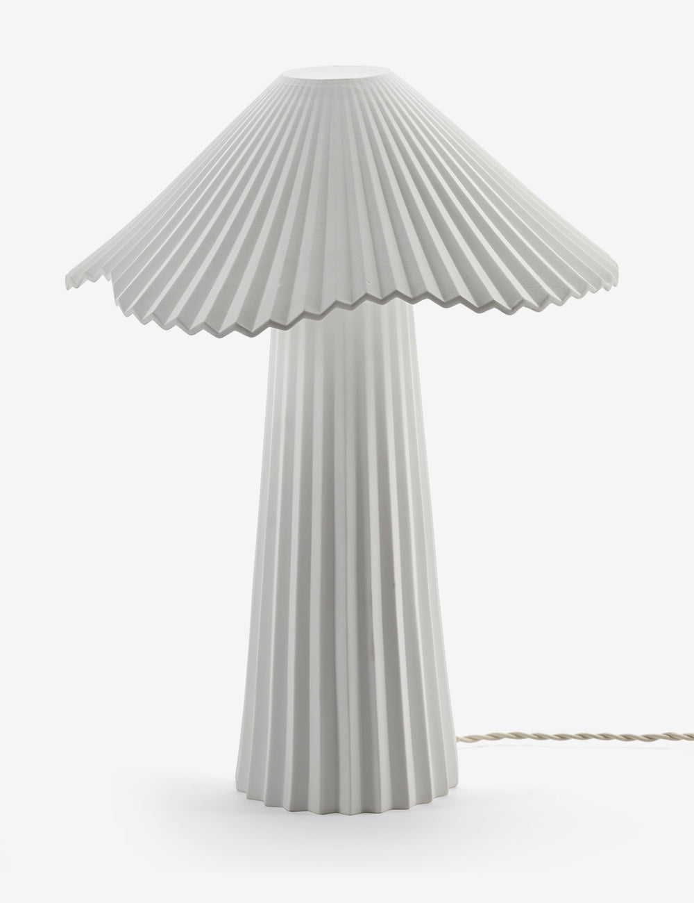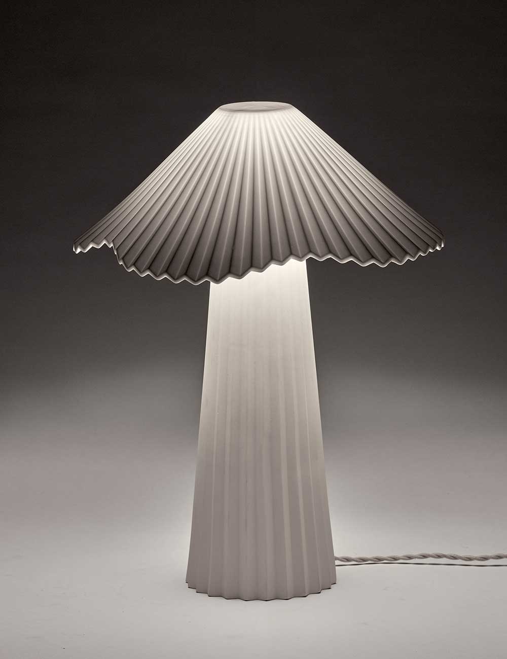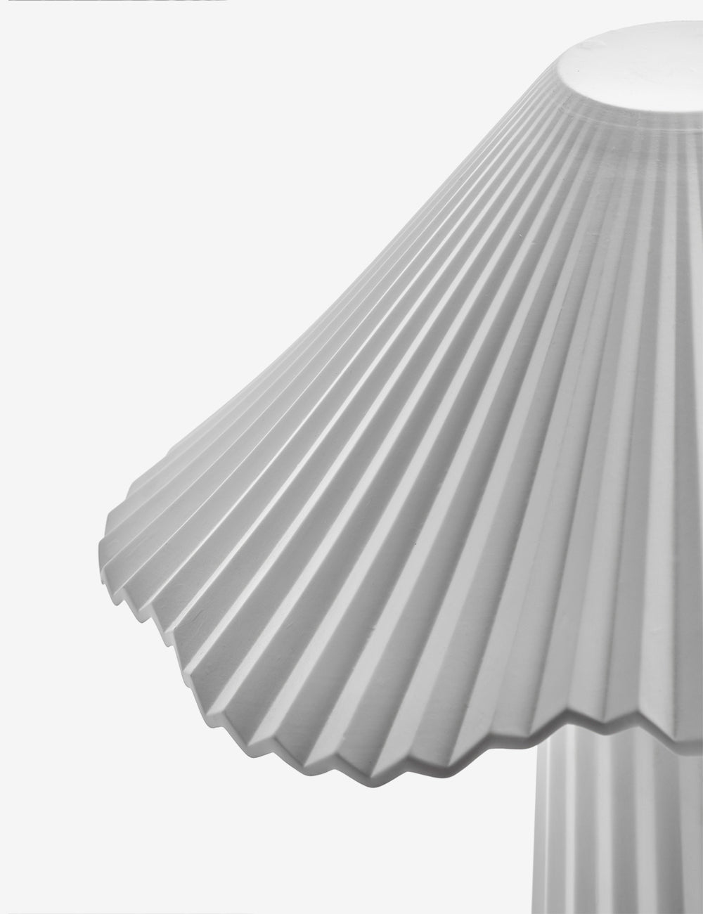 El reconocido diseñador alemán Sebastian Herkner creó Uala para Serax, una elegante lámpara de porcelana inspirada en la forma tropical de la Licuala Grandis o Ruffled Palm.
