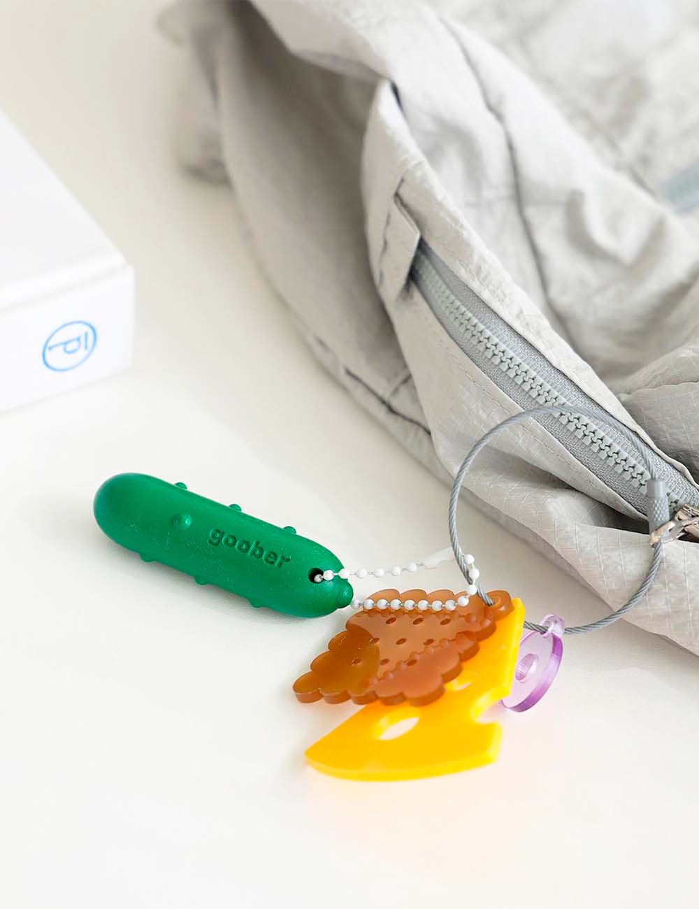 Goober Crayon Canapé Keyring es un llavero en forma de canapé que combina piezas de cera y capas de acrílico para crear un accesorio tan divertido como llamativo.