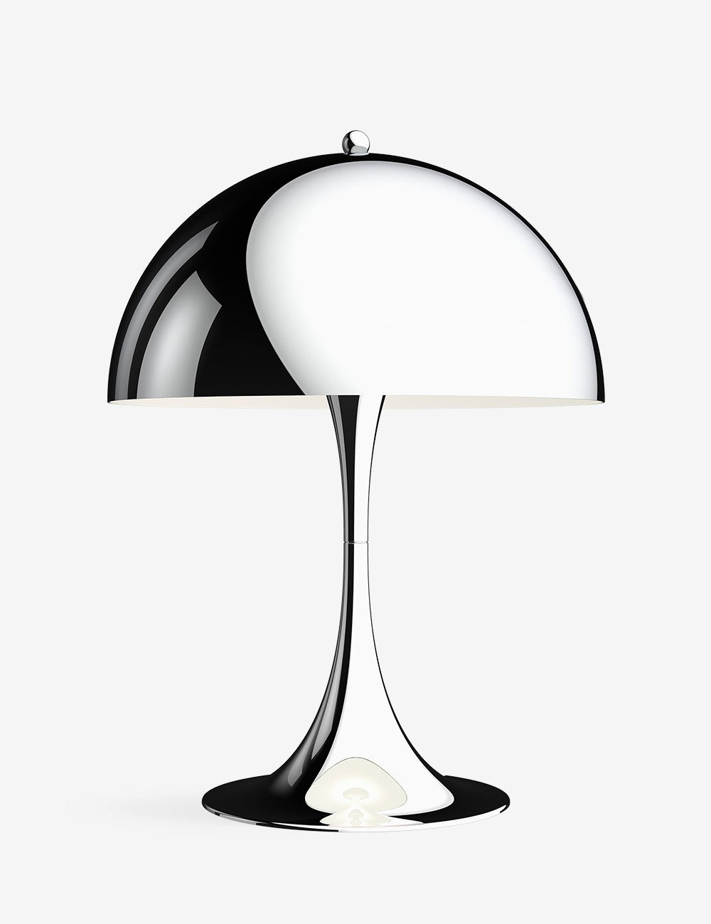 Podrás encontrar Panthella Mesa 320 con su pantalla metálica, o acrílica opal.