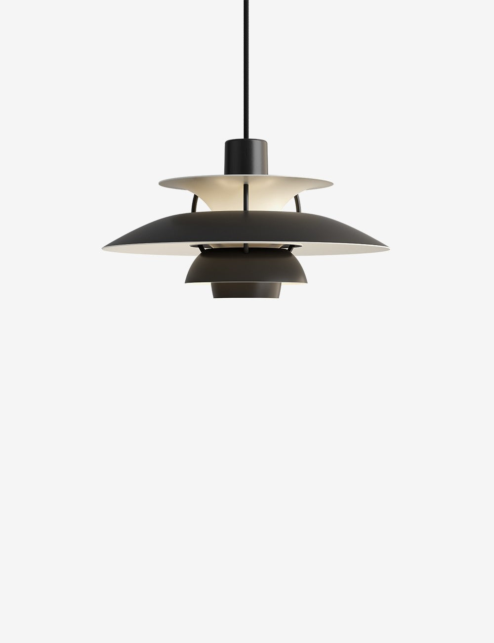 En 1958, Poul Henningsen diseñó la PH5, en respuesta a los constantes cambios que los fabricantes iban introduciendo en el tamaño y la forma de las bombillas incandescentes, y la bautizó en base al diámetro de la pantalla principal de esta lámpara de suspensión, 30 centímetros.