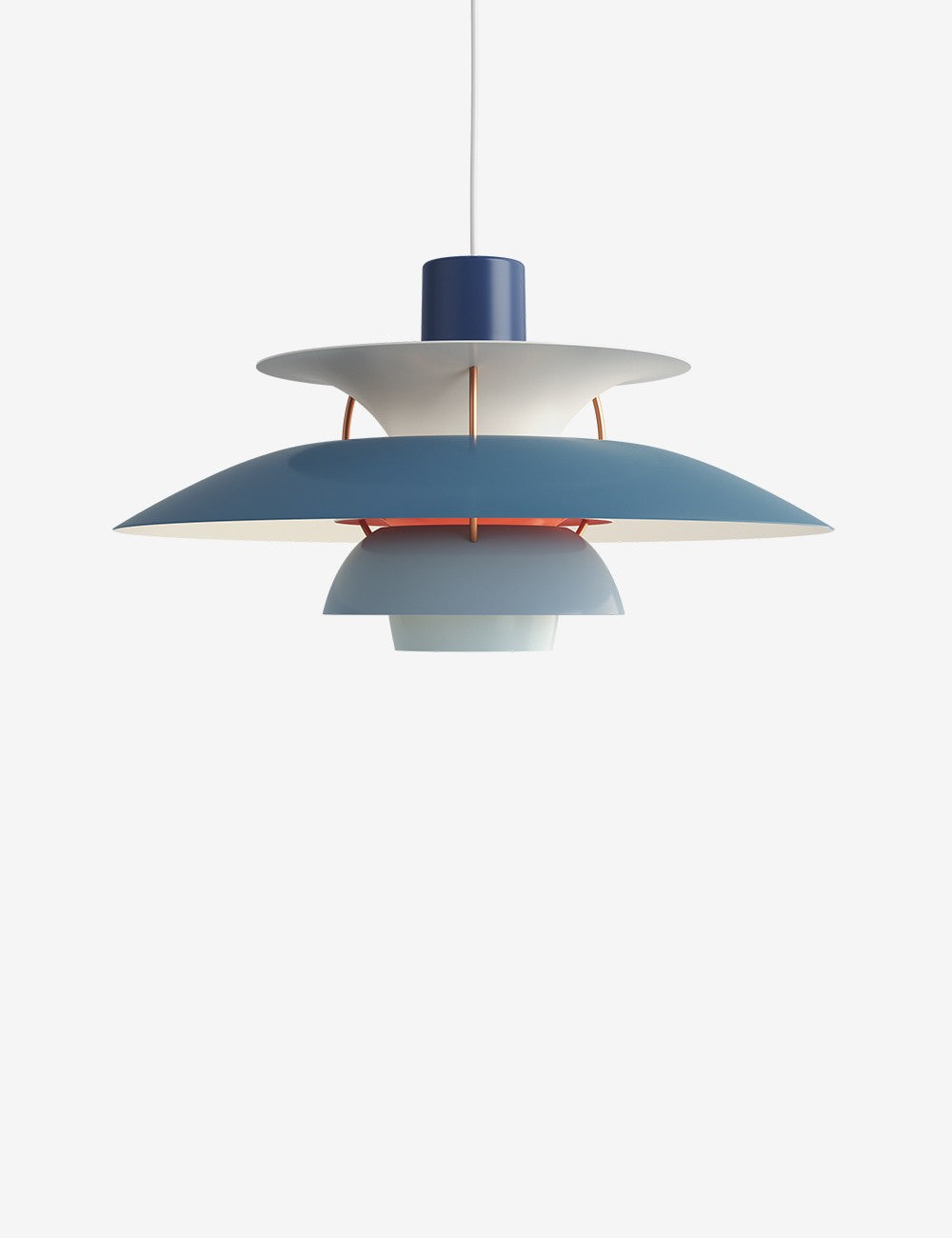 En 1958, Poul Henningsen diseñó la PH5, en respuesta a los constantes cambios que los fabricantes iban introduciendo en el tamaño y la forma de las bombillas incandescentes, y la bautizó en base al diámetro de la pantalla principal de esta lámpara de suspensión, 50 centímetros.