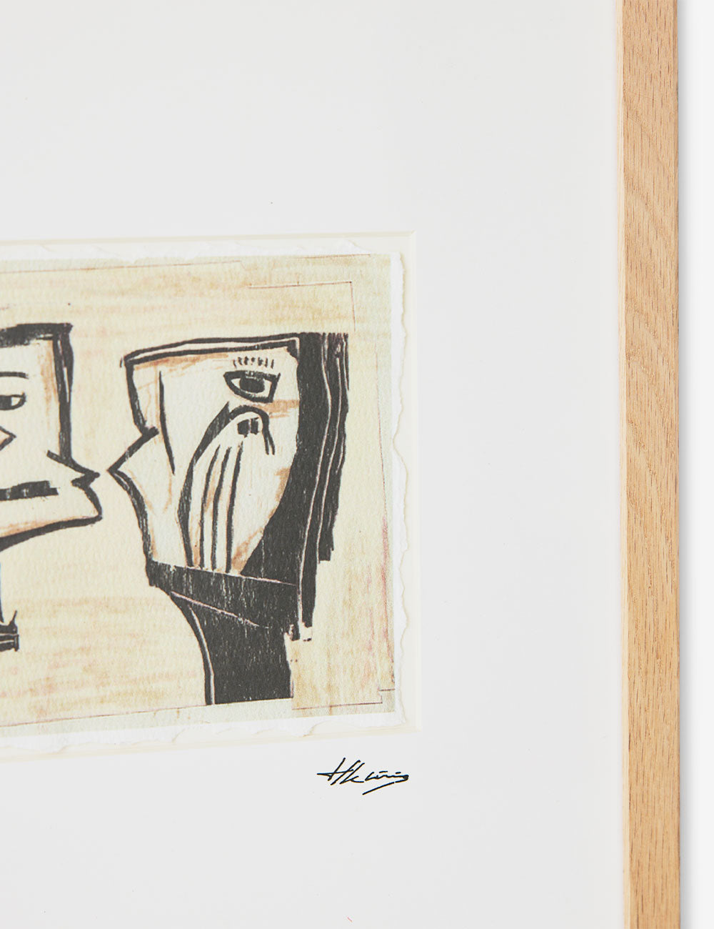 Marty and Kosso destaca por su audaz simplicidad. Líneas negras definidas, casi arquitectónicas, crean una composición que transmite inmediatez e intención.