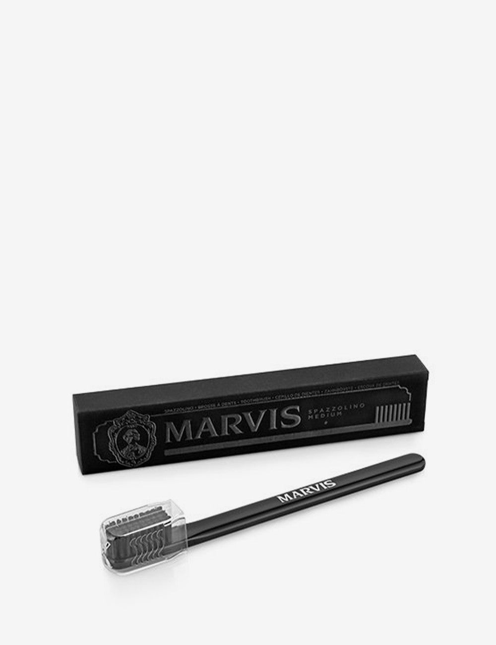 Este elegante cepillo de dientes de dureza media es el aliado perfecto para disfrutar de tu pasta de dientes Marvis favorita.