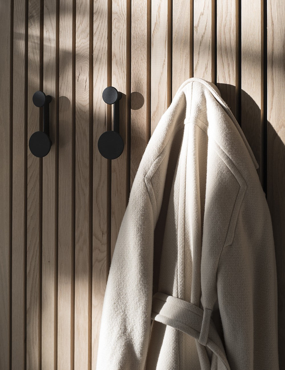 Partiendo de la idea "menos, es más", junto a funcionalidad, este colgador puede ser posicionado horizontal y verticalmente, y además su diseño simple y a su vez elegante lo convierte en piezas decorativas por sí mismas cuando no está en uso.